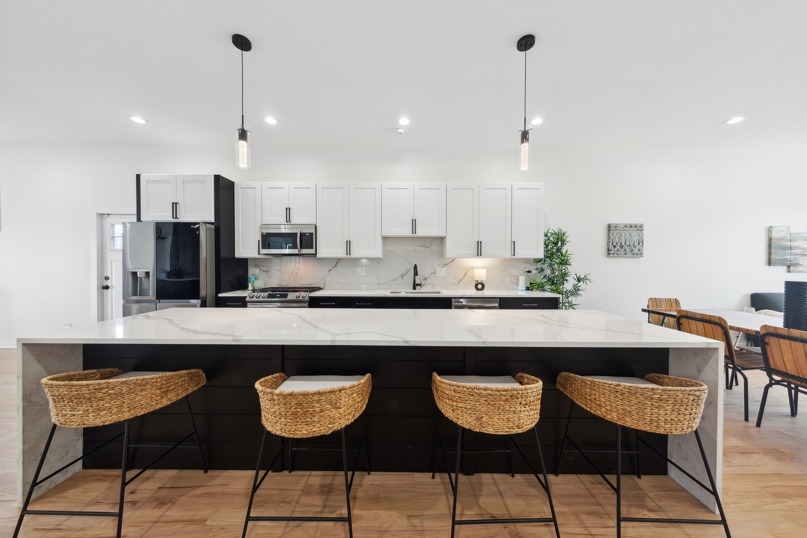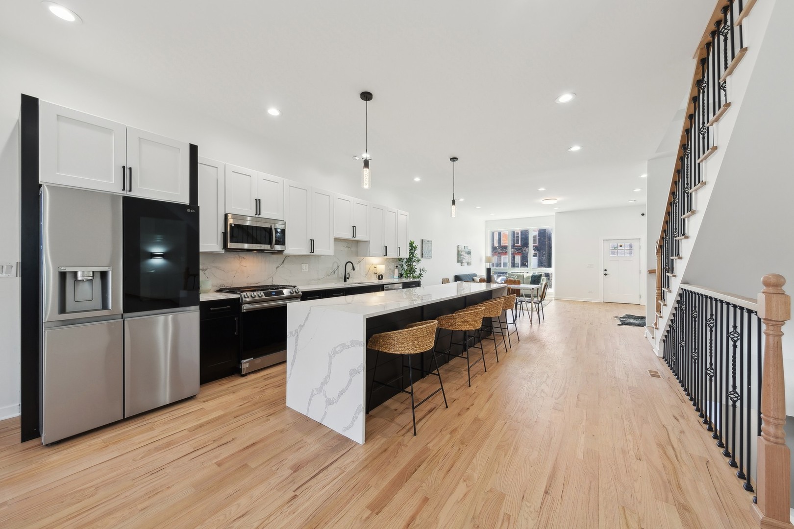 WALK-THROUGH VIDEO TOUR LINK AVAILABLE! JUST COMPLETED BRAND NEW CONSTRUCTION! STEPS TO ALL THAT HUMBOLDT PARK/UKRAINIAN VILLAGE/LOGAN SQUARE HAVE TO OFFER INCLUDING HUMBOLDT PARK BOAT HOUSE/BEACH/TENNIS COURTS/CULTURAL CENTER, 606 TRAIL, PUBLIC TRANSPORTATION, RESTAURANTS & RETAIL IN SEVERAL NEARBY BUSINESS DISTRICTS. EXTRA BRIGHT 3500 SQ FT 5BD (ALL ENSUITE/3BDS UP)/5.1BA + FAMILY ROOM + REC ROOM BRAND NEW SINGLE FAMILY HOME ON EXTRA WIDE LOT (30 FT) WITH MASSIVE (APPROXIMATELY 1000 SQ FT) ROOF TOP DECK WITH PANORAMIC CITY, SKYLINE VIEWS AND DOG HOUSE WITH BUILT-IN WET BAR. PROFESSIONAL-GRADE KITCHEN WITH 12FT QUARTZ WATERFALL ISLAND, STAINLESS STEEL APPLIANCES AND CUSTOM TWO-TONED CABINETS OPENS TO FAMILY ROOM WITH BUILT-IN DRY BAR & LARGE PRIVATE DECK. EXTRA WIDE LIVING ROOM (19FT) WITH HALLWAY CLOSET, WALL OF WINDOWS AND 10 FT CEILINGS. LUXURIOUS PRIMARY SUITE WITH 2 WALK-IN CLOSETS & SPA BATH WITH DOUBLE BOWL VANITY, WATER CLOSET AND GLASS ENCLOSED OVER-SIZED WALK-IN SHOWER WITH DUAL SHOWER HEADS. SOUGHT-AFTER 3 BEDS/2 BATHS/LAUNDRY UP AND 4 WALK-IN CLOSETS ON SECOND LEVEL. LOWER-LEVEL FEATURES OVERSIZED REC ROOM INCLUDING HANDCRAFTED BENCH, FULL SIZE WET BAR WITH BEV REFRIGERATOR, ADDITIONAL STORAGE, LAUNDRY AREA & 2 GREAT SIZED GUEST BEDROOMS WITH ATTACHED BATHS. MULTIPLE OUTDOOR SPACES IDEAL FOR ENTERTAINING INCLUDE FRONT, SIDE & BACK YARDS, FRONT PORCH, BACK DECK, ROOF TOP DECK WITH 2 SEPARATE AREAS WITH PANORAMIC VIEWS. UPGRADES INCLUDE HARDWOOD FLOORING THROUGHOUT, DUAL ZONED HEATING & COOLING, 2 TANKLESS WATER HEATERS, WATER BOOSTER & ASTRO TURF FRONT YARD. 3-CAR GARAGE. 1 YEAR DEVELOPER'S WARRANTY INCLUDED!!!