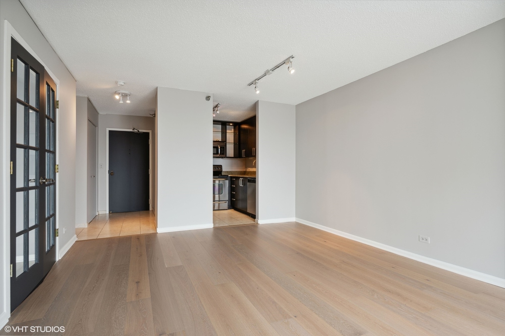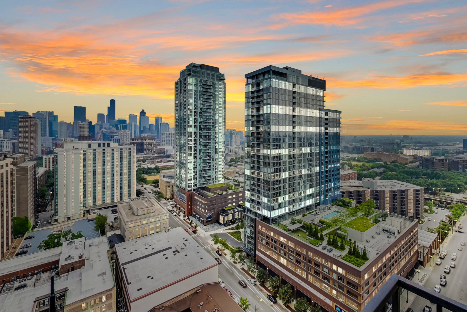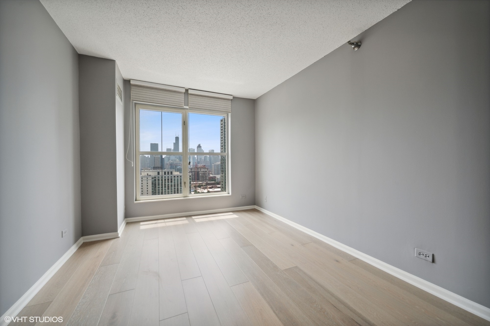 Gorgeous skyline views from this SOUTH-FACING high, 25th, floor 1 bedroom condo at the LaSalle Private Residences! Brand new, beautiful wood flooring and fresh paint as of July 2022! Very efficiently laid out space works great for working from home and/or commuting with the convenient CTA options right outside the door. Modern kitchen has modern rifted white oak cabinets with espresso finish, open shelving with accent lighting, and beautiful granite countertops. Large bedroom space with French doors has room for a desk and dresser. Great closet/storage space throughout the unit. Private balcony - gas grills ok! Unbeatable Old Town/Gold Coast location - steps to Wells St, Division, and Oak/Rush. Red Line and LaSalle bus right outside the door - quick walk/jog to lake front path. Building has a welcoming circle drive for easy pick-ups/drop-offs and deliveries. 24/7 door staff - the best in town! ASSESSMENT INCLUDES HD/DVR, Internet, heat, and AC in addition to the basics. Healthy association with just about $1mil in reserves. Rentals ok. Prime deeded garage parking space with no car neighbors additional $20,000.