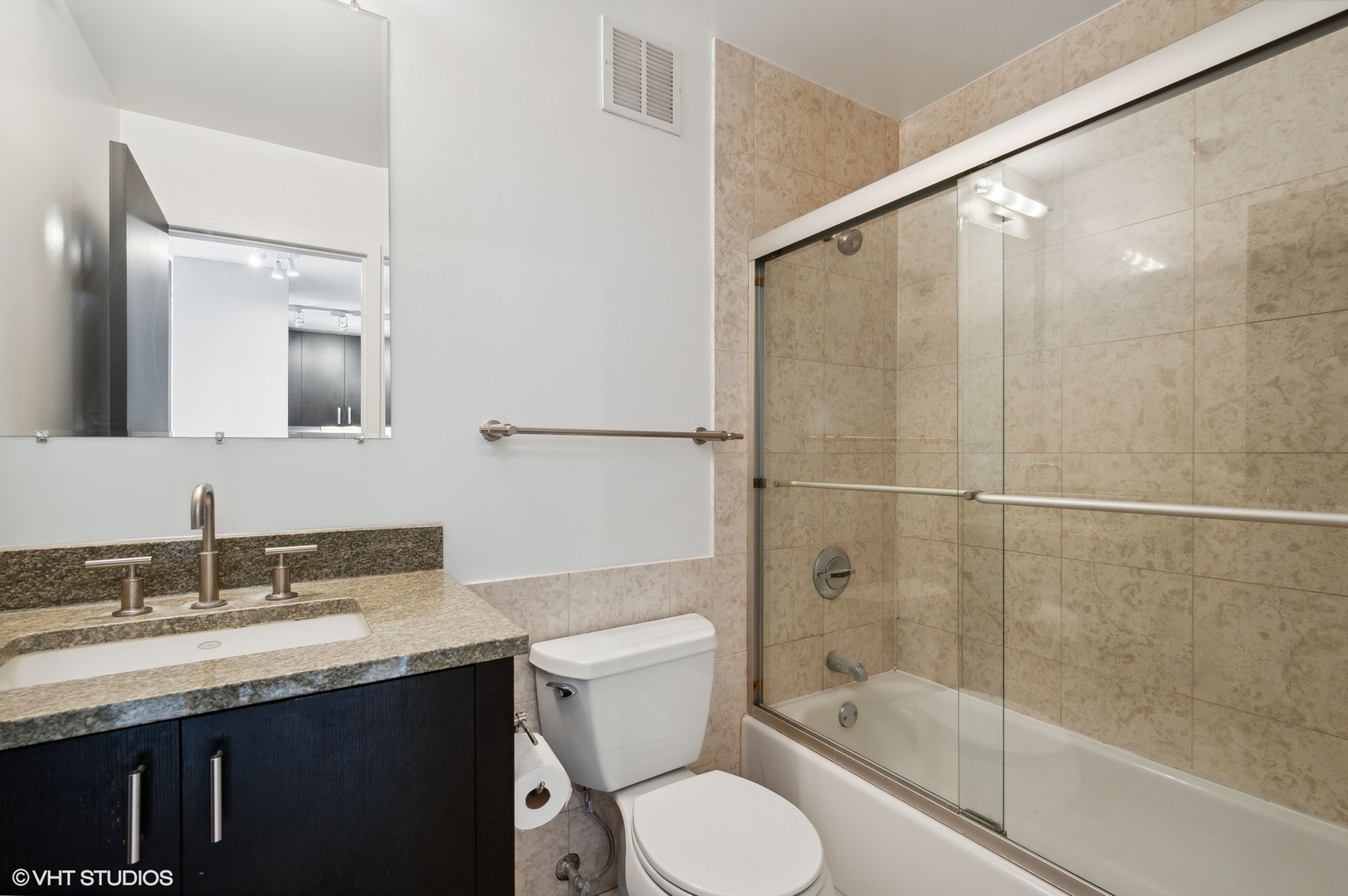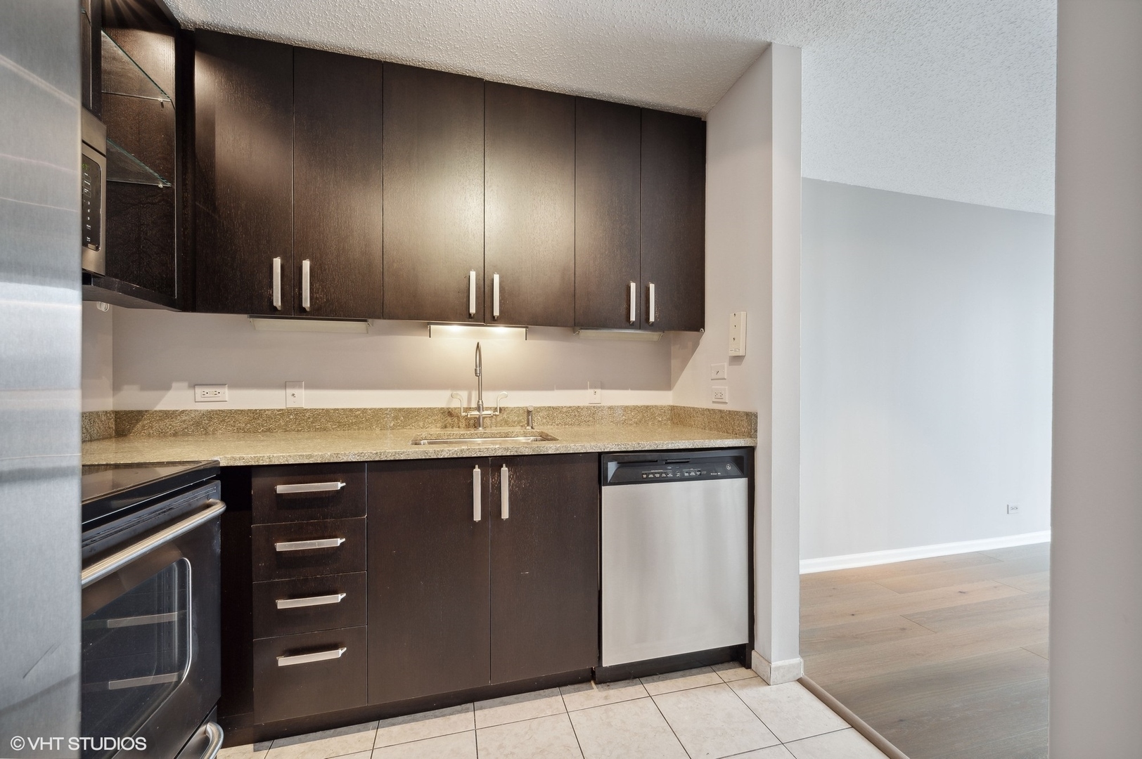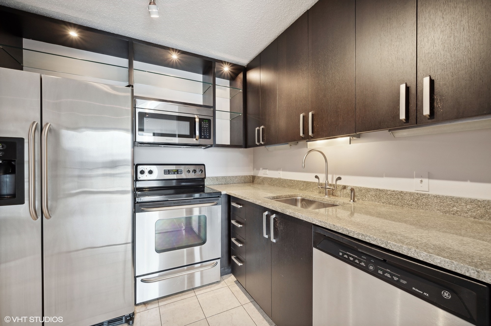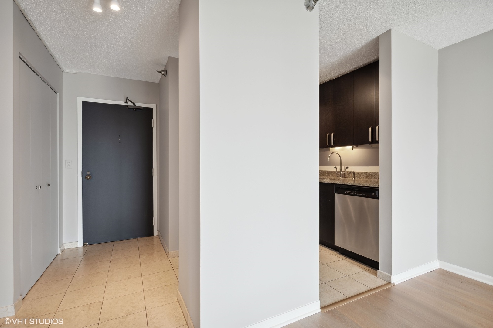 Gorgeous skyline views from this SOUTH-FACING high, 25th, floor 1 bedroom condo at the LaSalle Private Residences! Brand new, beautiful wood flooring and fresh paint as of July 2022! Very efficiently laid out space works great for working from home and/or commuting with the convenient CTA options right outside the door. Modern kitchen has modern rifted white oak cabinets with espresso finish, open shelving with accent lighting, and beautiful granite countertops. Large bedroom space with French doors has room for a desk and dresser. Great closet/storage space throughout the unit. Private balcony - gas grills ok! Unbeatable Old Town/Gold Coast location - steps to Wells St, Division, and Oak/Rush. Red Line and LaSalle bus right outside the door - quick walk/jog to lake front path. Building has a welcoming circle drive for easy pick-ups/drop-offs and deliveries. 24/7 door staff - the best in town! ASSESSMENT INCLUDES HD/DVR, Internet, heat, and AC in addition to the basics. Healthy association with just about $1mil in reserves. Rentals ok. Prime deeded garage parking space with no car neighbors additional $20,000.