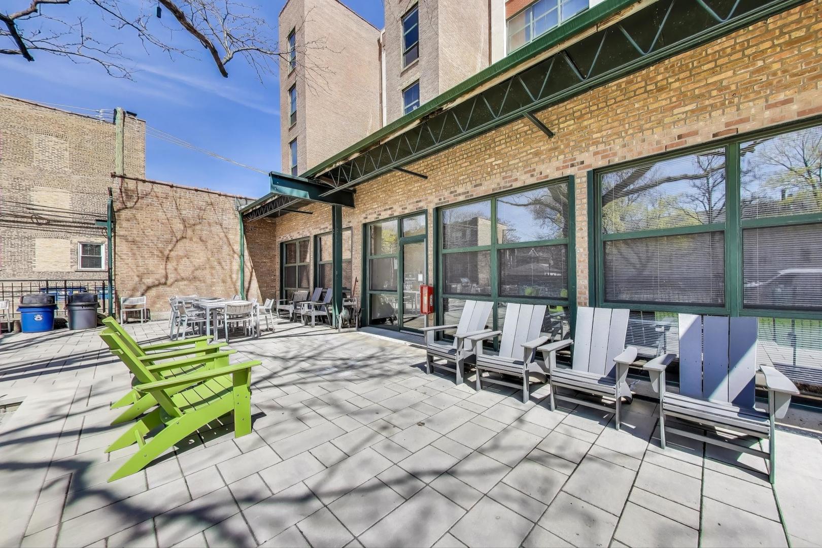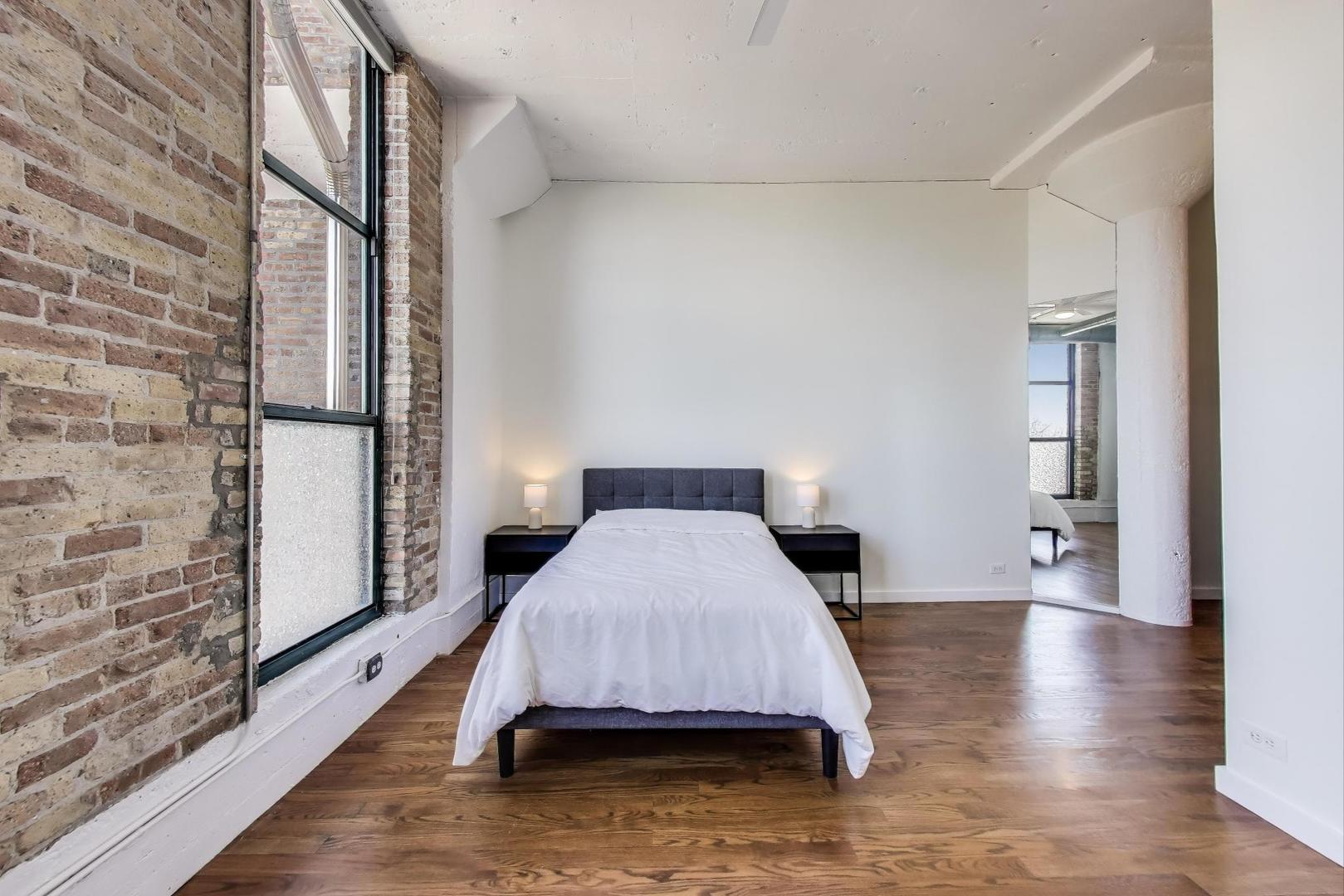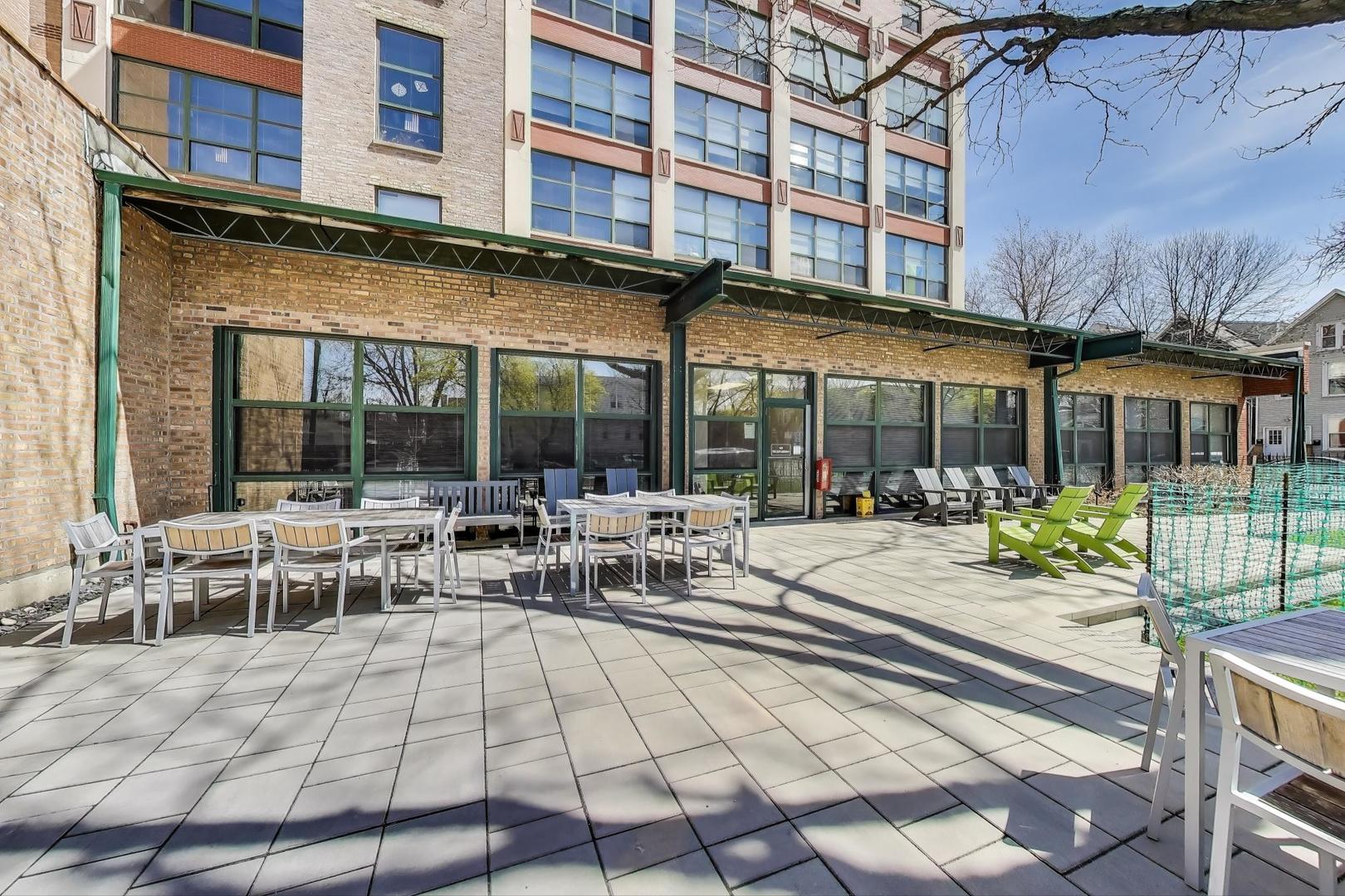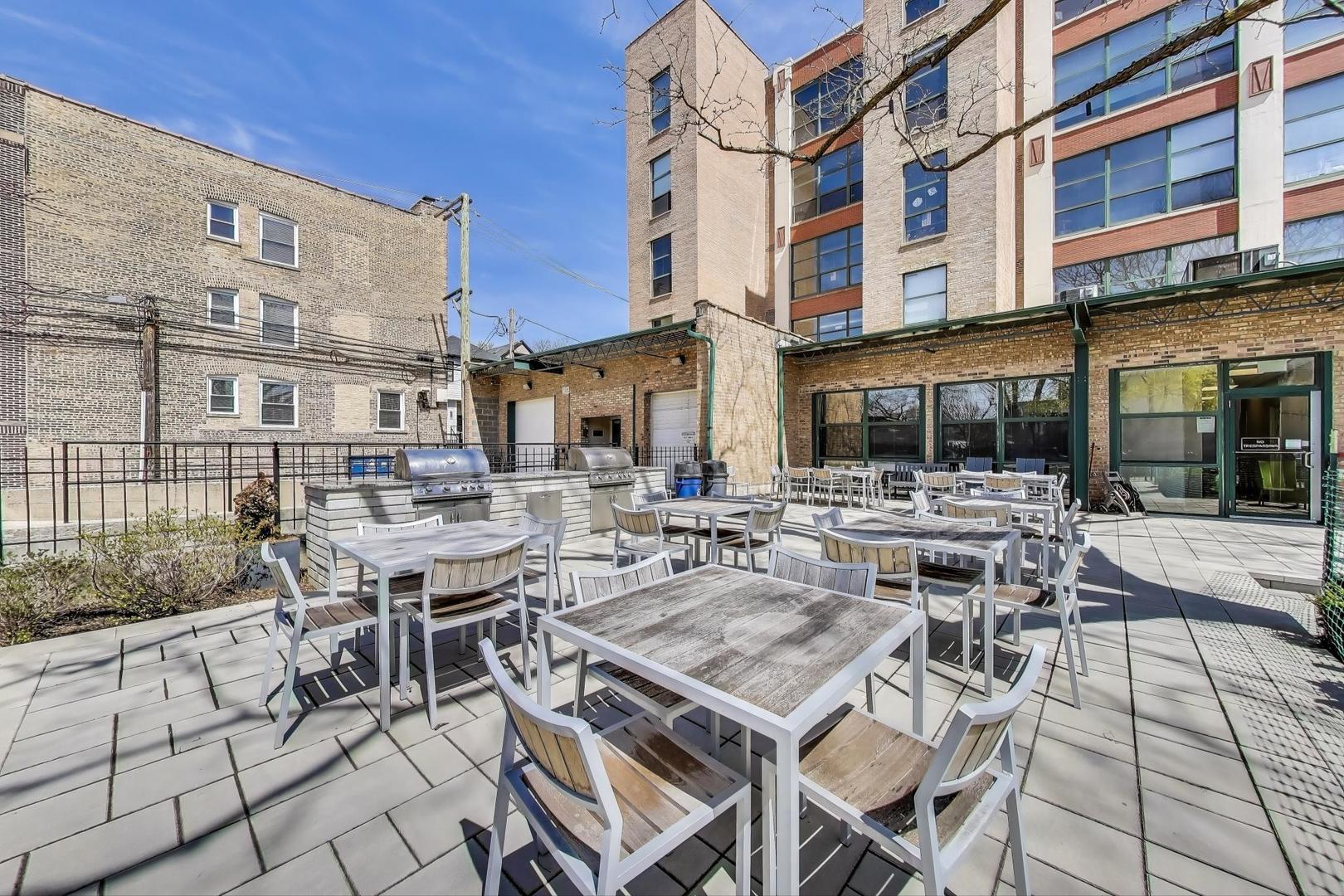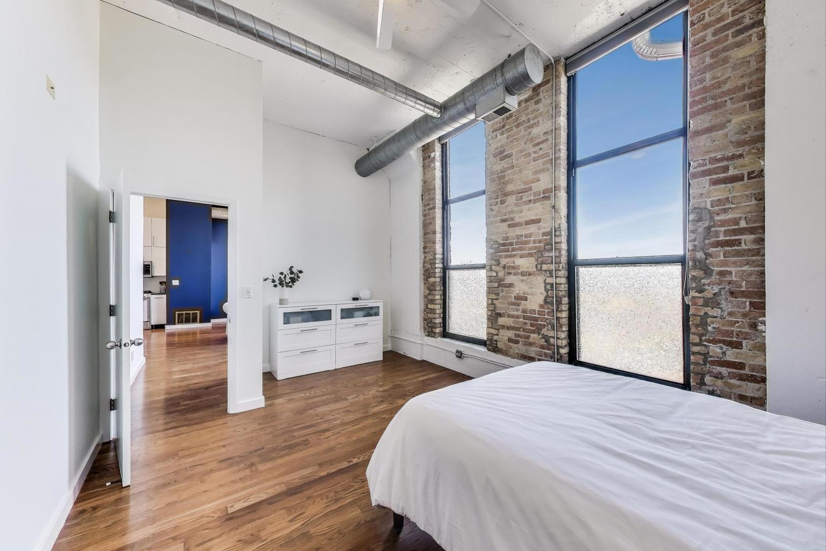 Bright and Spacious top-floor 2 bedroom/1 bath loft in the iconic Pencil Factory Lofts. This sun-filled home features soaring ceilings and floor-to-ceiling windows offering expansive views of Roscoe Village and Lakeview. The open-concept layout showcases true loft style with exposed brick, concrete pillars, custom shelving, and exposed ductwork. The kitchen is sleek and functional with stainless steel appliances, white cabinetry, and generous storage. A rare fully enclosed second bedroom just off the living area is ideal for guests, a nursery, or a home office. The spacious bathroom includes a double vanity and separate water closet with shower. The oversized primary suite features a cozy bump-out perfect for a reading nook or desk, a large walk-in closet with custom ELFA organizers, and IN UNIT LAUNDRY! Heated garage parking is included. Residents enjoy access to top-tier amenities including a fully equipped gym, rooftop deck with sweeping skyline views, dog wash, manual car wash, dry cleaner, party room, receiving room, bike storage, fiber-optic internet, coin laundry, and a beautifully landscaped courtyard currently undergoing renovation. Ideally located in the heart of Roscoe Village-just steps from Frasca's, Brown Bag Seafood, and the Paulina Brown Line, with Southport Corridor only minutes away.