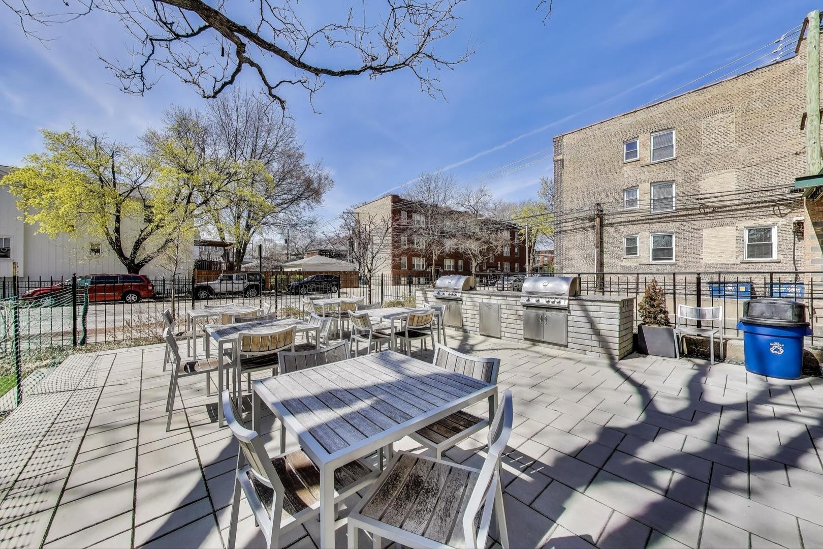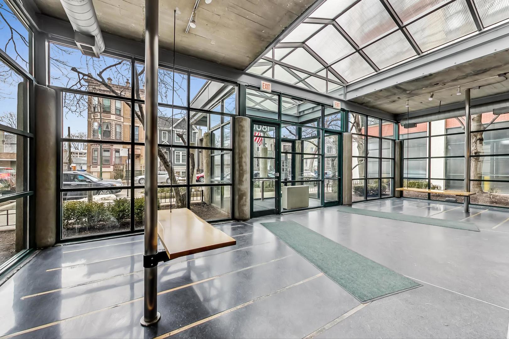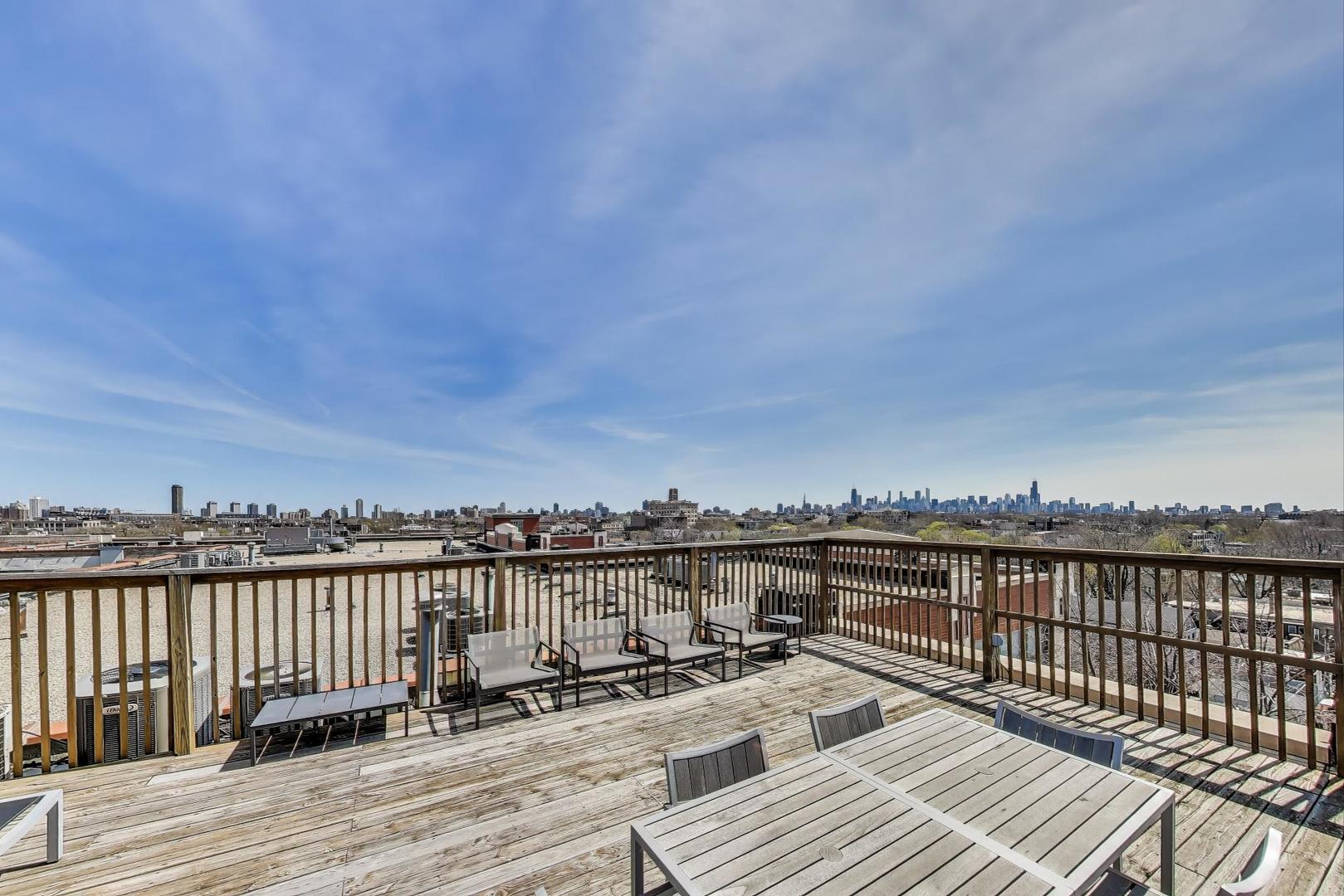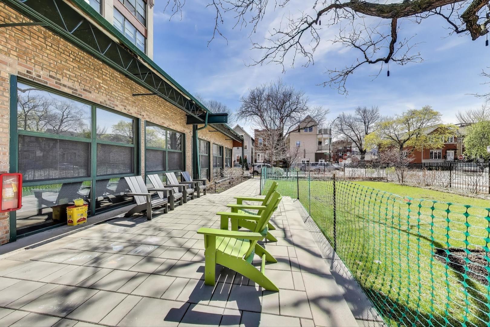 Bright and Spacious top-floor 2 bedroom/1 bath loft in the iconic Pencil Factory Lofts. This sun-filled home features soaring ceilings and floor-to-ceiling windows offering expansive views of Roscoe Village and Lakeview. The open-concept layout showcases true loft style with exposed brick, concrete pillars, custom shelving, and exposed ductwork. The kitchen is sleek and functional with stainless steel appliances, white cabinetry, and generous storage. A rare fully enclosed second bedroom just off the living area is ideal for guests, a nursery, or a home office. The spacious bathroom includes a double vanity and separate water closet with shower. The oversized primary suite features a cozy bump-out perfect for a reading nook or desk, a large walk-in closet with custom ELFA organizers, and IN UNIT LAUNDRY! Heated garage parking is included. Residents enjoy access to top-tier amenities including a fully equipped gym, rooftop deck with sweeping skyline views, dog wash, manual car wash, dry cleaner, party room, receiving room, bike storage, fiber-optic internet, coin laundry, and a beautifully landscaped courtyard currently undergoing renovation. Ideally located in the heart of Roscoe Village-just steps from Frasca's, Brown Bag Seafood, and the Paulina Brown Line, with Southport Corridor only minutes away.