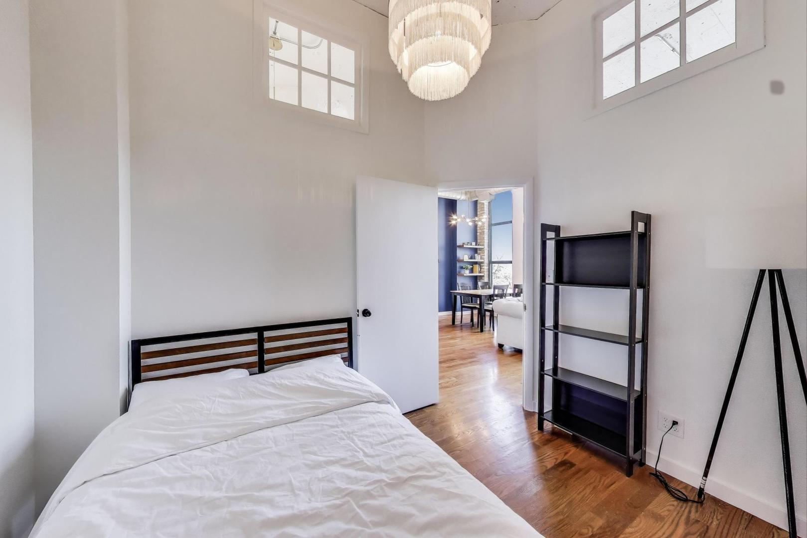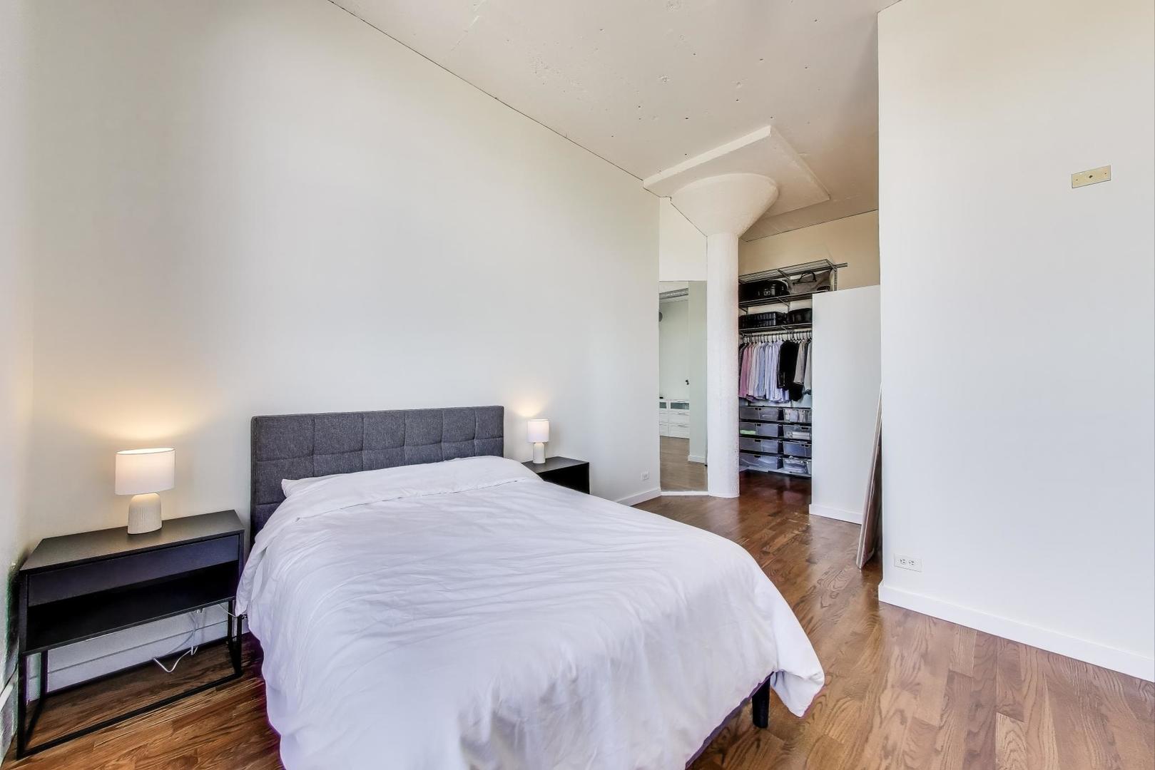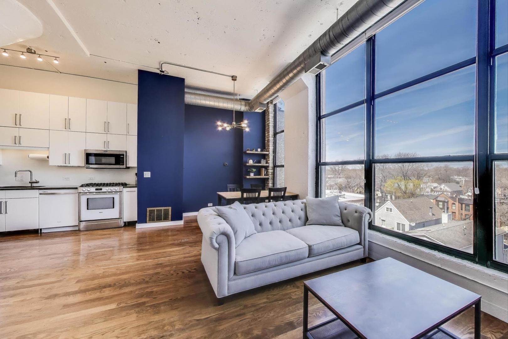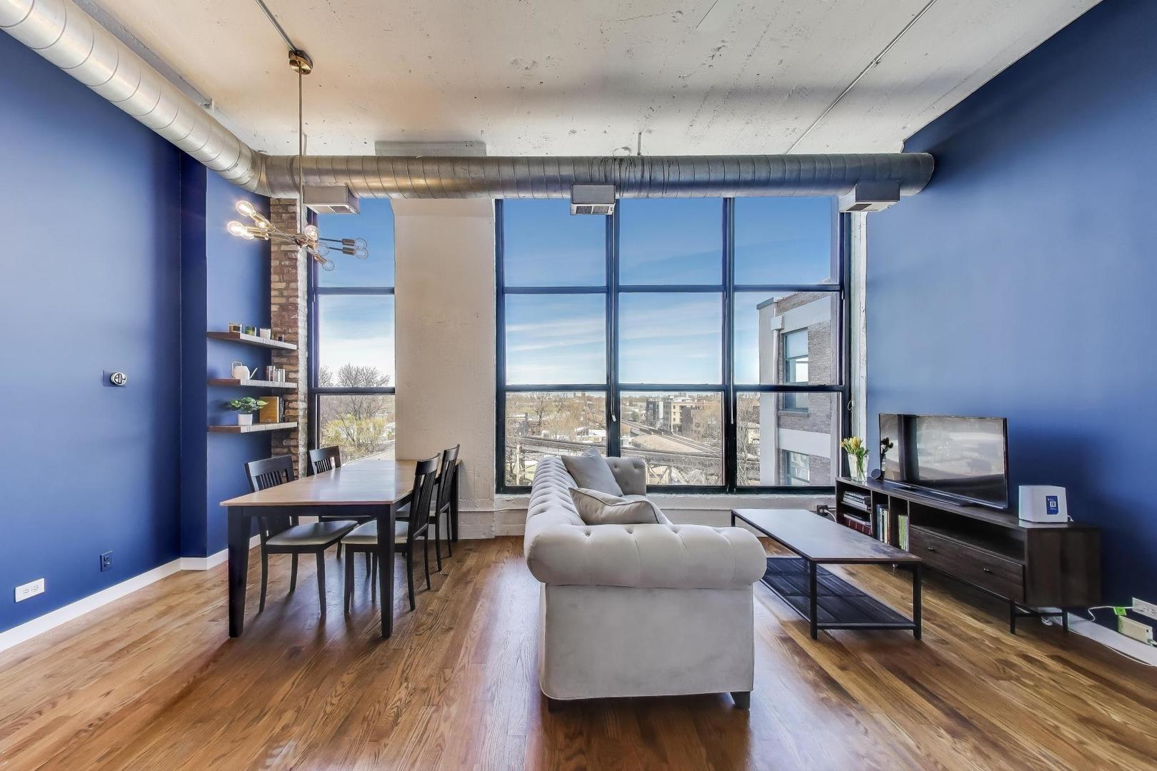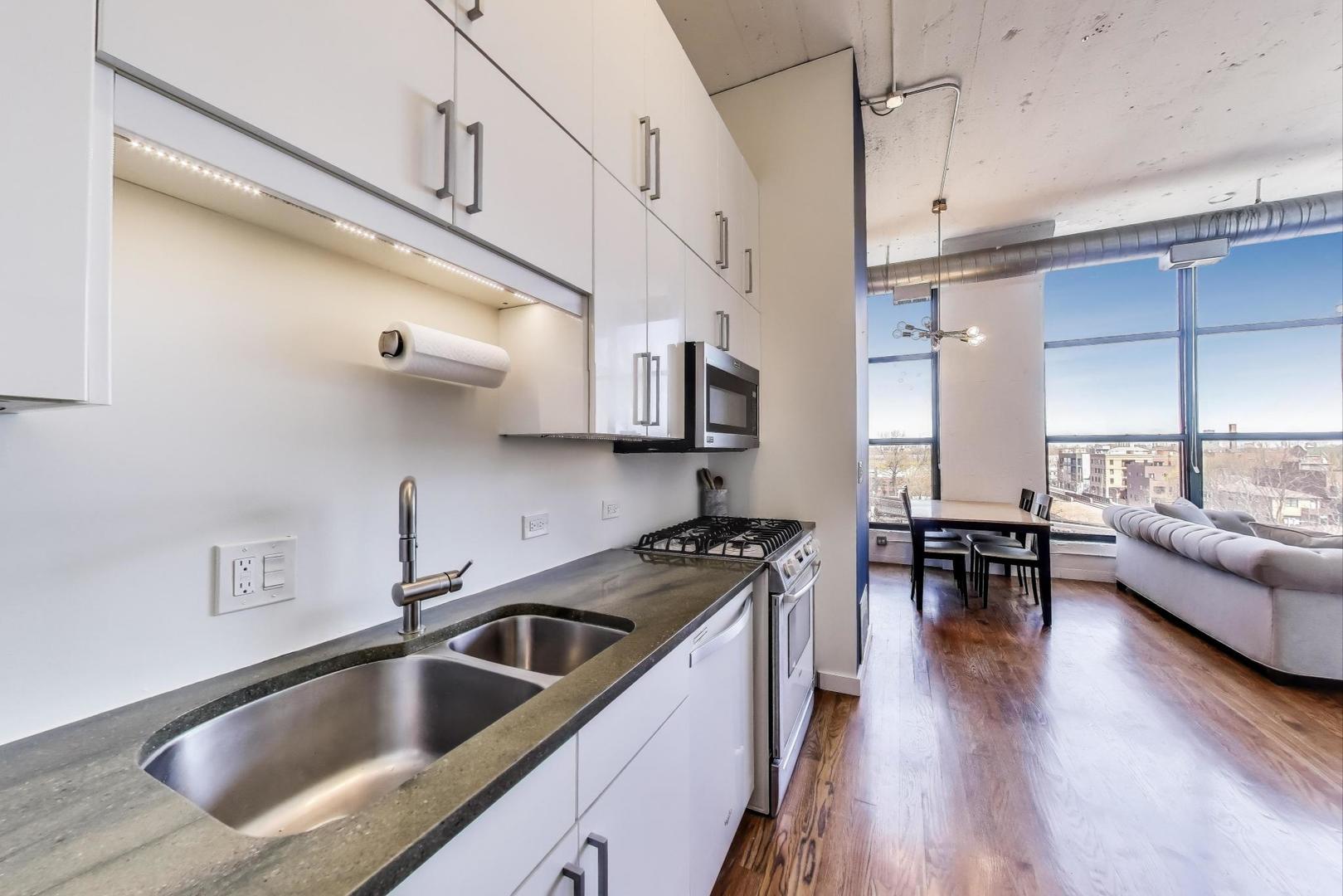 Bright and Spacious top-floor 2 bedroom/1 bath loft in the iconic Pencil Factory Lofts. This sun-filled home features soaring ceilings and floor-to-ceiling windows offering expansive views of Roscoe Village and Lakeview. The open-concept layout showcases true loft style with exposed brick, concrete pillars, custom shelving, and exposed ductwork. The kitchen is sleek and functional with stainless steel appliances, white cabinetry, and generous storage. A rare fully enclosed second bedroom just off the living area is ideal for guests, a nursery, or a home office. The spacious bathroom includes a double vanity and separate water closet with shower. The oversized primary suite features a cozy bump-out perfect for a reading nook or desk, a large walk-in closet with custom ELFA organizers, and IN UNIT LAUNDRY! Heated garage parking is included. Residents enjoy access to top-tier amenities including a fully equipped gym, rooftop deck with sweeping skyline views, dog wash, manual car wash, dry cleaner, party room, receiving room, bike storage, fiber-optic internet, coin laundry, and a beautifully landscaped courtyard currently undergoing renovation. Ideally located in the heart of Roscoe Village-just steps from Frasca's, Brown Bag Seafood, and the Paulina Brown Line, with Southport Corridor only minutes away.