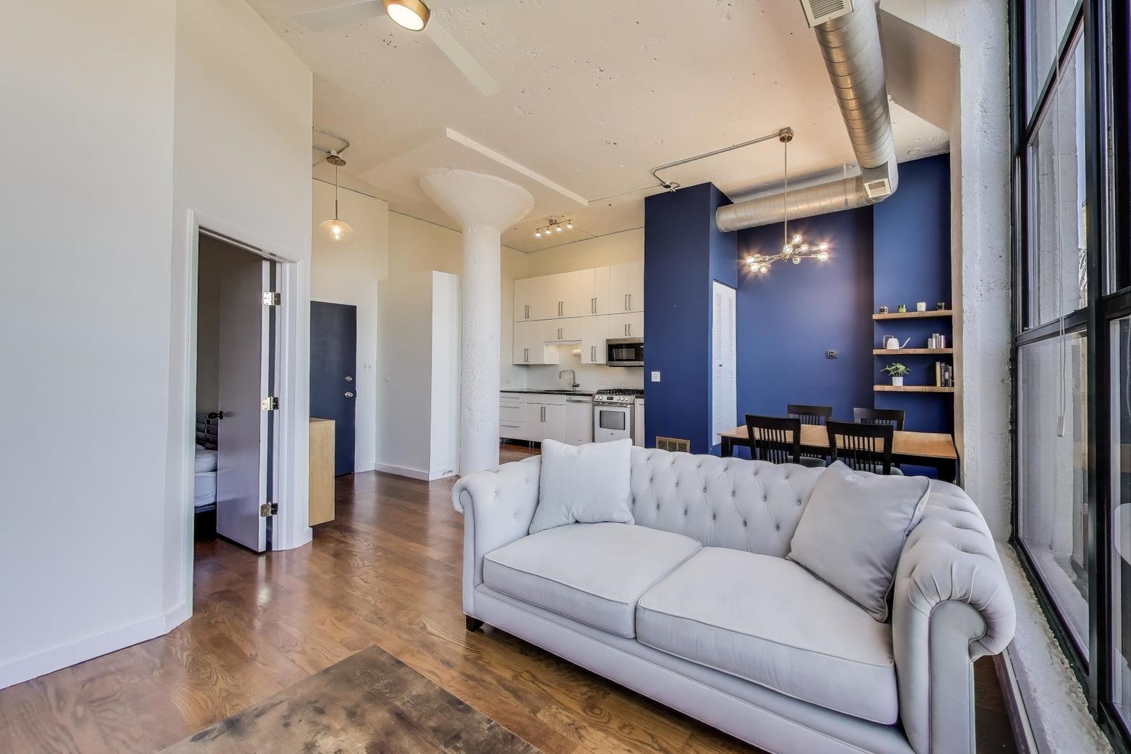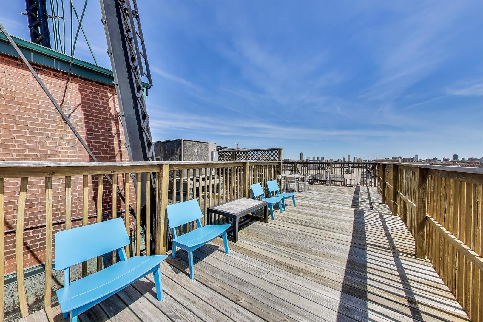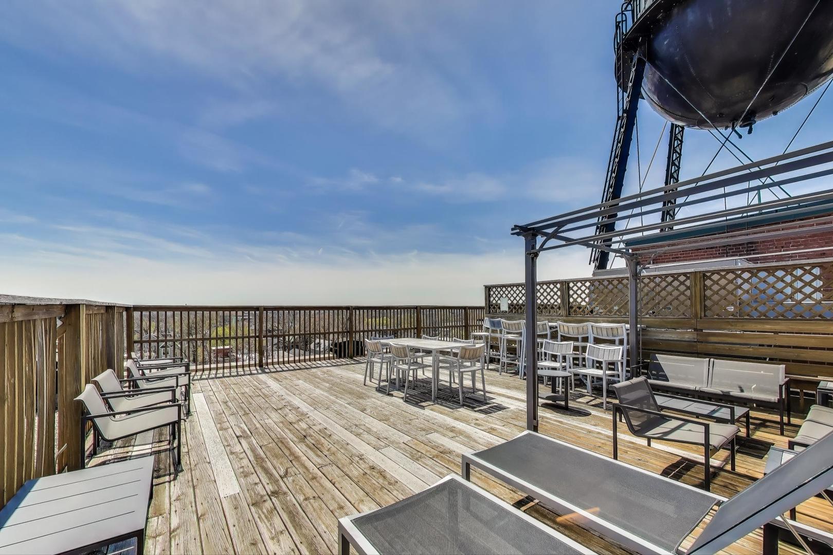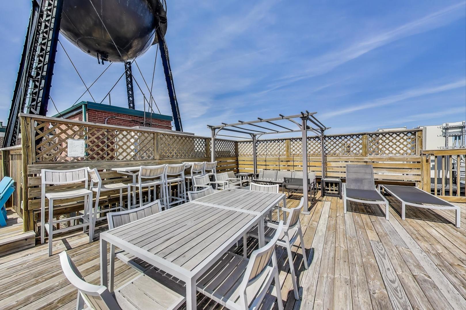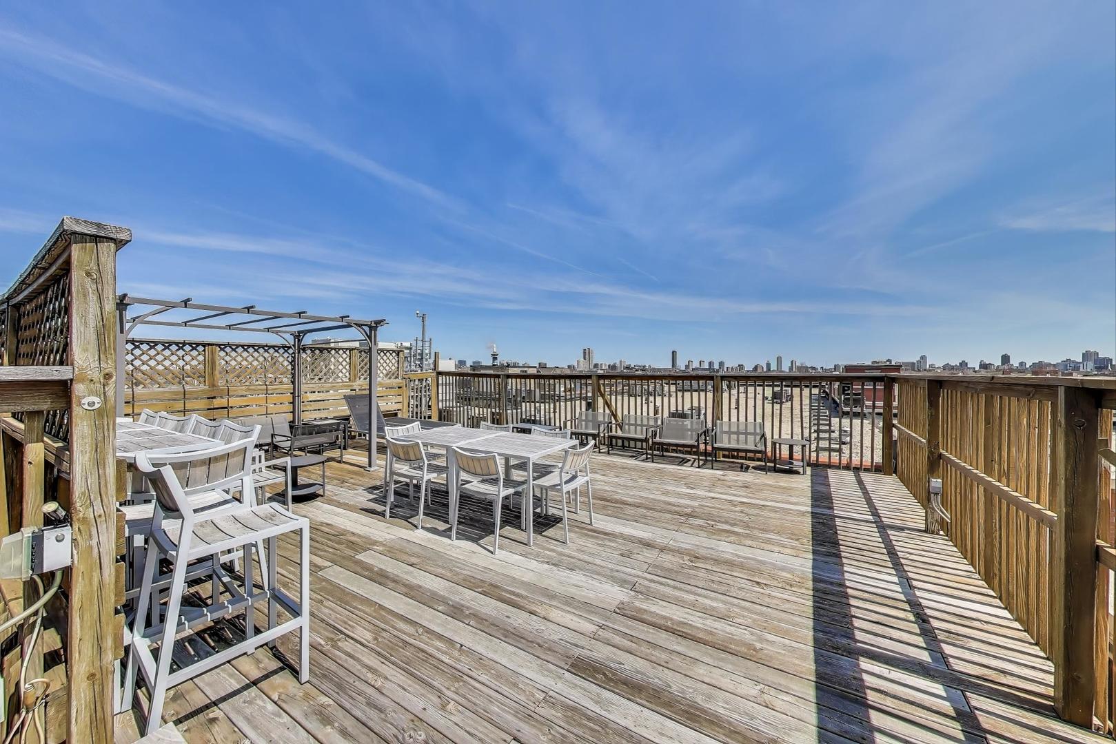 Bright and Spacious top-floor 2 bedroom/1 bath loft in the iconic Pencil Factory Lofts. This sun-filled home features soaring ceilings and floor-to-ceiling windows offering expansive views of Roscoe Village and Lakeview. The open-concept layout showcases true loft style with exposed brick, concrete pillars, custom shelving, and exposed ductwork. The kitchen is sleek and functional with stainless steel appliances, white cabinetry, and generous storage. A rare fully enclosed second bedroom just off the living area is ideal for guests, a nursery, or a home office. The spacious bathroom includes a double vanity and separate water closet with shower. The oversized primary suite features a cozy bump-out perfect for a reading nook or desk, a large walk-in closet with custom ELFA organizers, and IN UNIT LAUNDRY! Heated garage parking is included. Residents enjoy access to top-tier amenities including a fully equipped gym, rooftop deck with sweeping skyline views, dog wash, manual car wash, dry cleaner, party room, receiving room, bike storage, fiber-optic internet, coin laundry, and a beautifully landscaped courtyard currently undergoing renovation. Ideally located in the heart of Roscoe Village-just steps from Frasca's, Brown Bag Seafood, and the Paulina Brown Line, with Southport Corridor only minutes away.