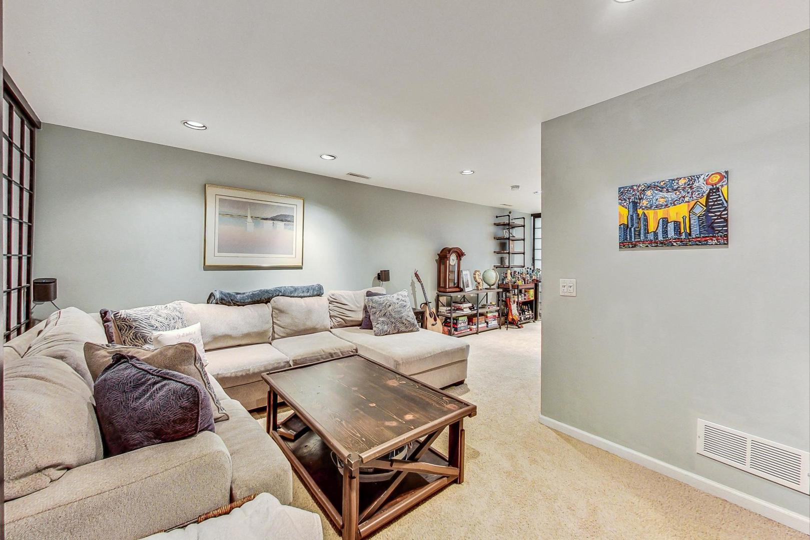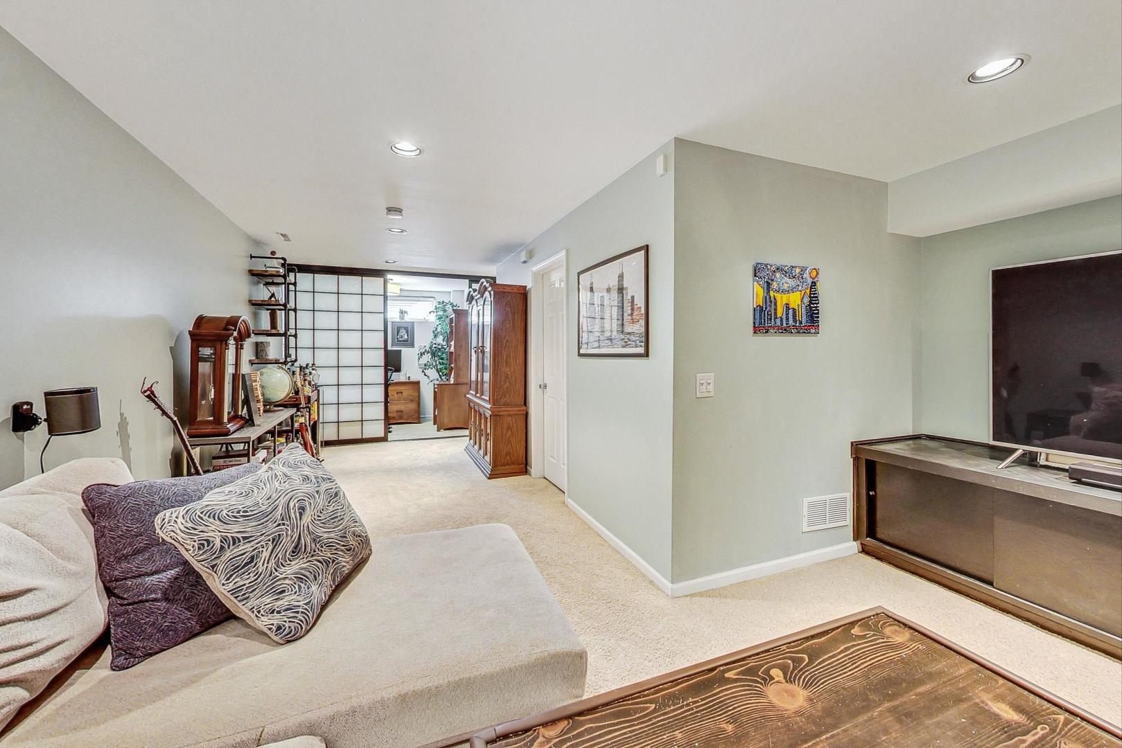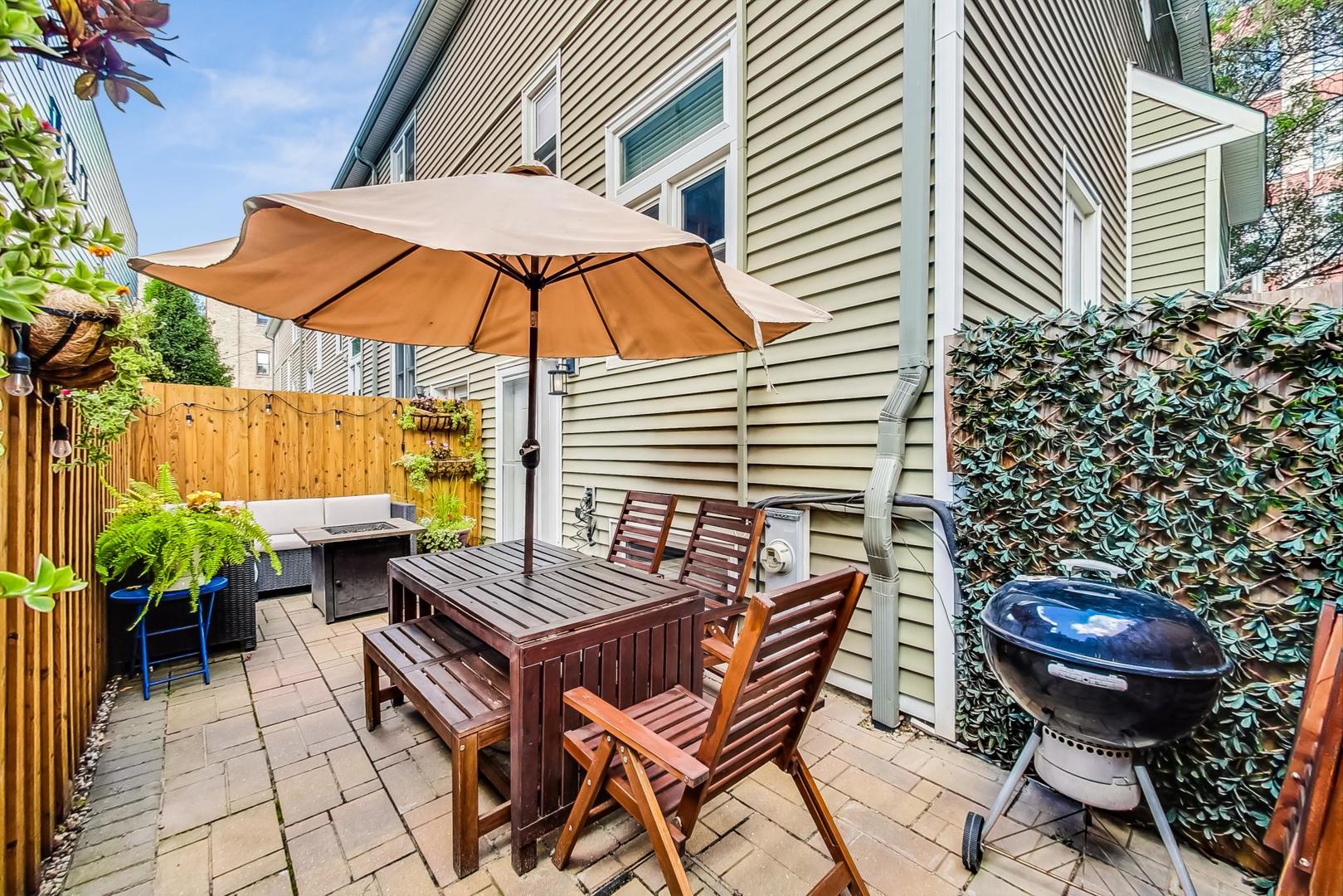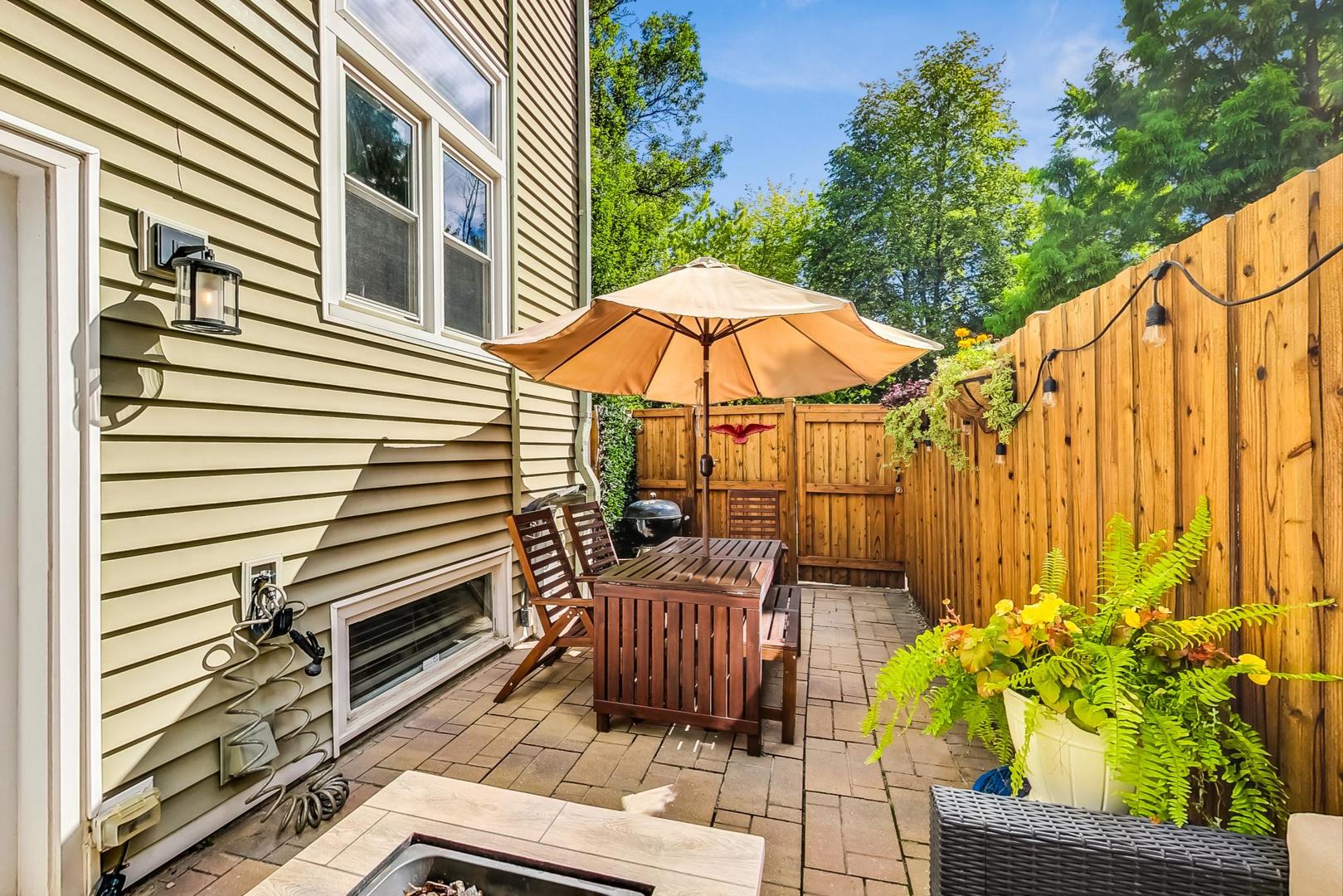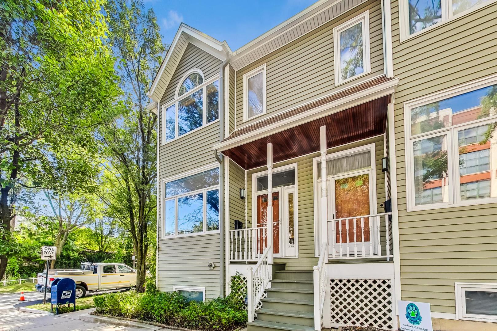 Welcome to this sun-drenched approx 2000sf end-unit townhome nestled in the heart of Roscoe Village, within the top-rated Hamilton Elementary School boundaries! This home offers an abundance of natural sunlight from three exposures and a private custom patio, perfect for entertaining or relaxing. Step inside to the main level, where you'll find a spacious living and dining area with gleaming hardwood floors, crown molding, and a cozy wood-burning fireplace. Custom built-ins and oversized windows create a warm and inviting atmosphere. The kitchen features stainless steel appliances, ample cabinetry and an eat-in area for casual dining. A well-appointed powder room rounds out the main level. The top floor is highlighted by a grand primary suite with soaring vaulted ceilings, expansive windows, and a cozy sitting or office nook. The elegant en suite bath offers a separate rain shower, a whirlpool tub, and luxurious stonework. A second spacious and bright bedroom and pull-down attic storage complete this level. The lower level offers a fantastic second living/family room, plus a bonus OFFICE or potential 3rd BEDROOM. You'll also find a walk in laundry room with full size washer/dryer to round out this ideal home. This exceptional location is just minutes from the CTA Paulina Brown Line, the Southport Corridor, and a variety of fine dining options, boutique gyms, and more! With assigned garage parking and a prime spot in one of the city's most desirable neighborhoods, this home is truly a must-see.