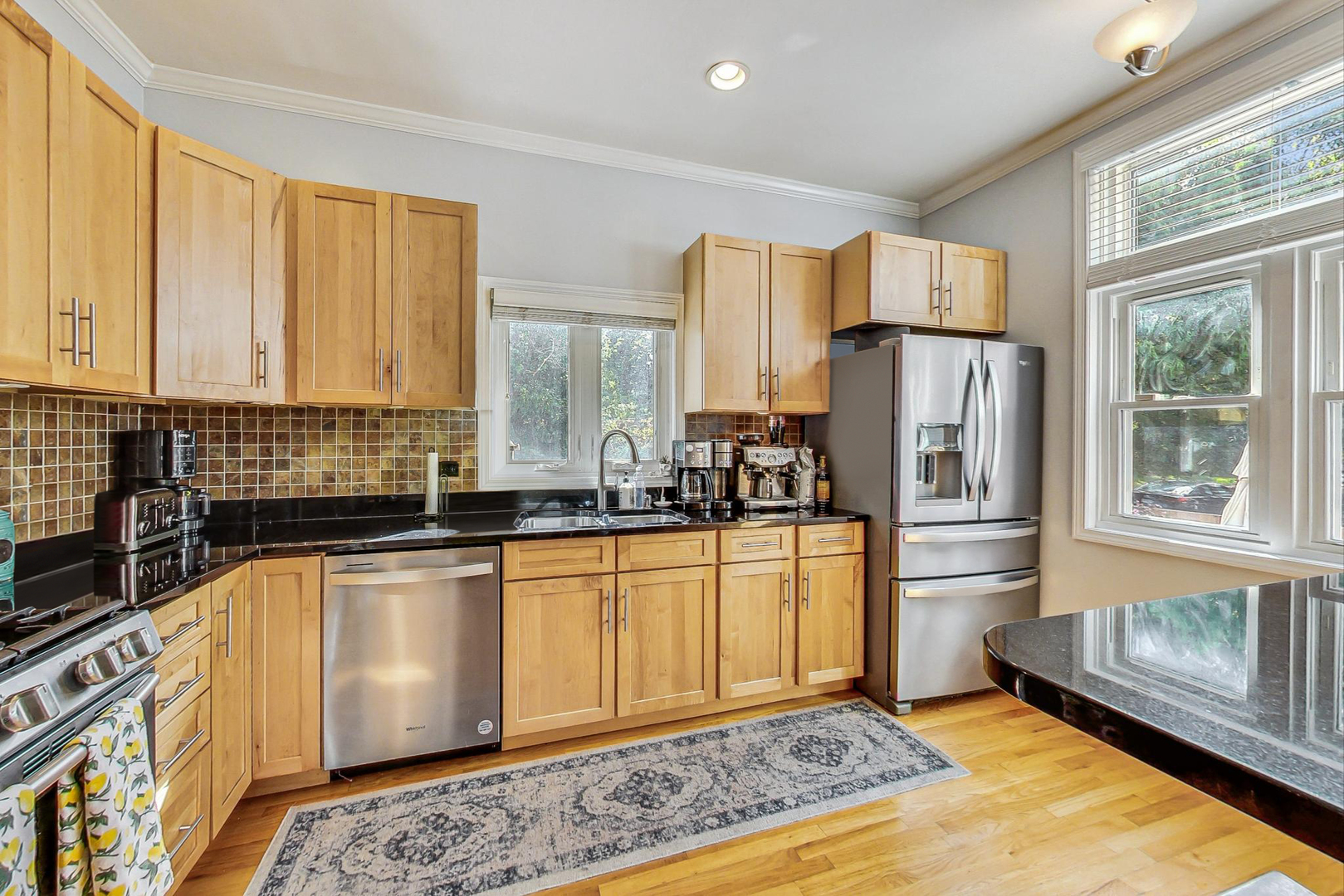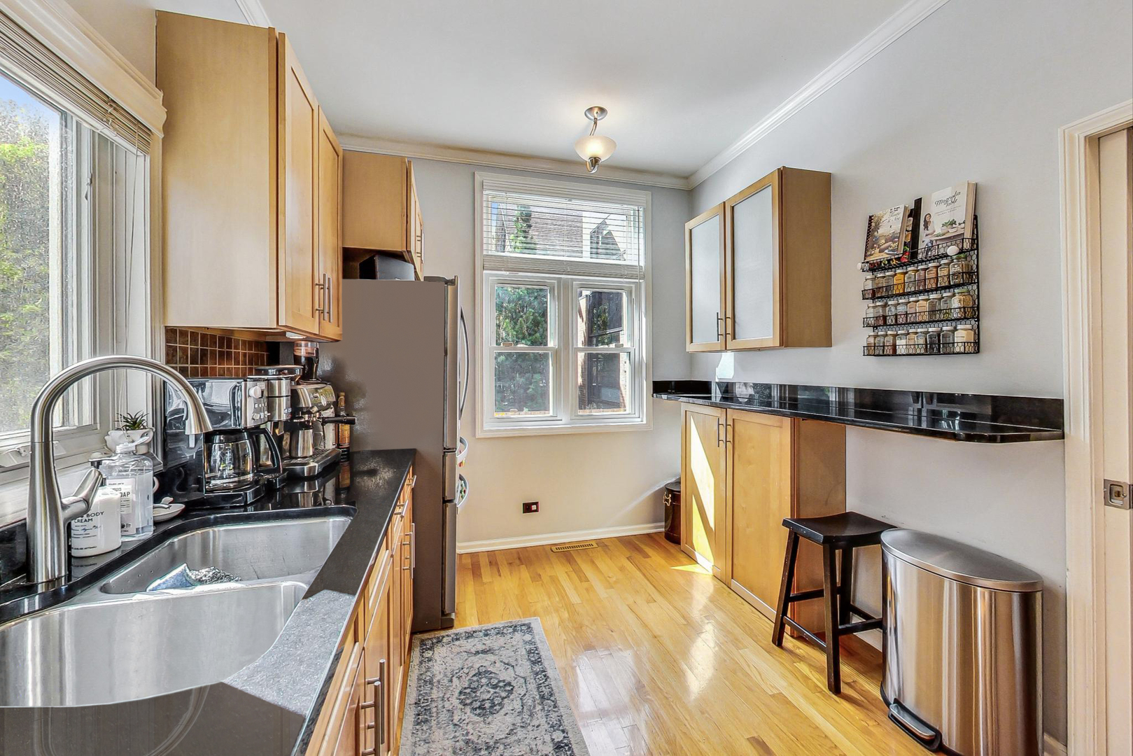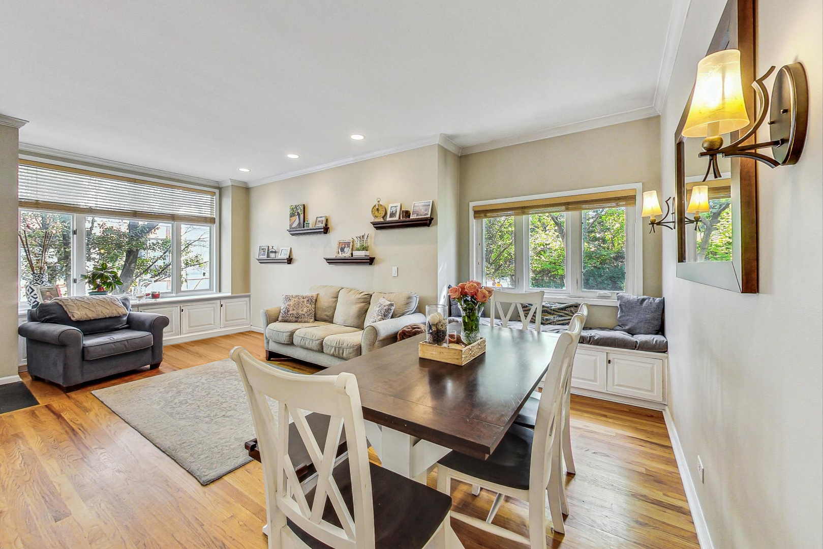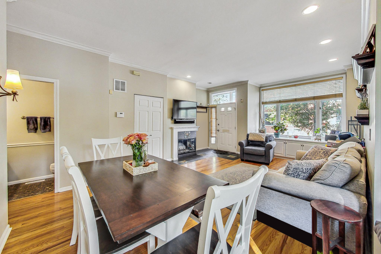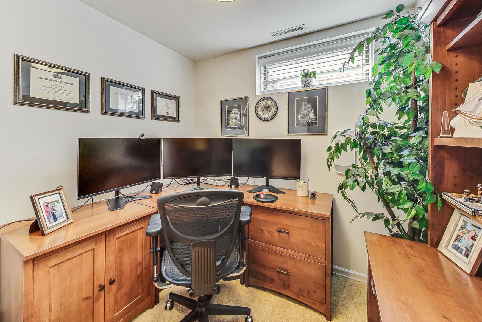 Welcome to this sun-drenched approx 2000sf end-unit townhome nestled in the heart of Roscoe Village, within the top-rated Hamilton Elementary School boundaries! This home offers an abundance of natural sunlight from three exposures and a private custom patio, perfect for entertaining or relaxing. Step inside to the main level, where you'll find a spacious living and dining area with gleaming hardwood floors, crown molding, and a cozy wood-burning fireplace. Custom built-ins and oversized windows create a warm and inviting atmosphere. The kitchen features stainless steel appliances, ample cabinetry and an eat-in area for casual dining. A well-appointed powder room rounds out the main level. The top floor is highlighted by a grand primary suite with soaring vaulted ceilings, expansive windows, and a cozy sitting or office nook. The elegant en suite bath offers a separate rain shower, a whirlpool tub, and luxurious stonework. A second spacious and bright bedroom and pull-down attic storage complete this level. The lower level offers a fantastic second living/family room, plus a bonus OFFICE or potential 3rd BEDROOM. You'll also find a walk in laundry room with full size washer/dryer to round out this ideal home. This exceptional location is just minutes from the CTA Paulina Brown Line, the Southport Corridor, and a variety of fine dining options, boutique gyms, and more! With assigned garage parking and a prime spot in one of the city's most desirable neighborhoods, this home is truly a must-see.