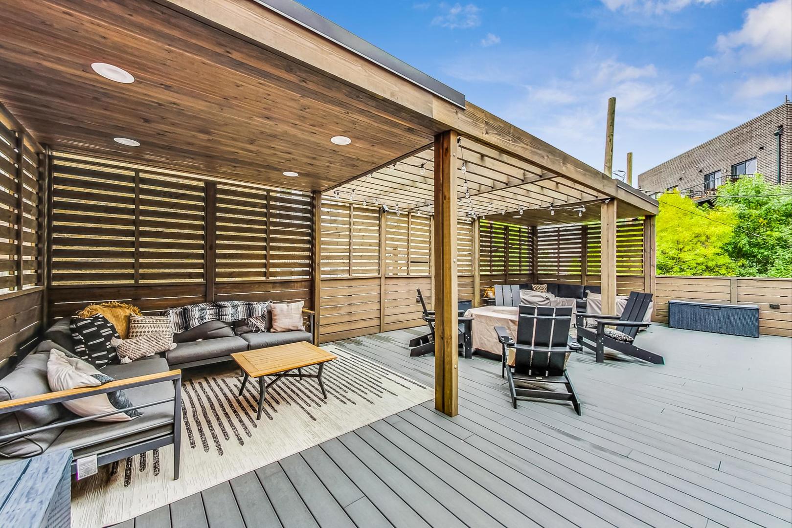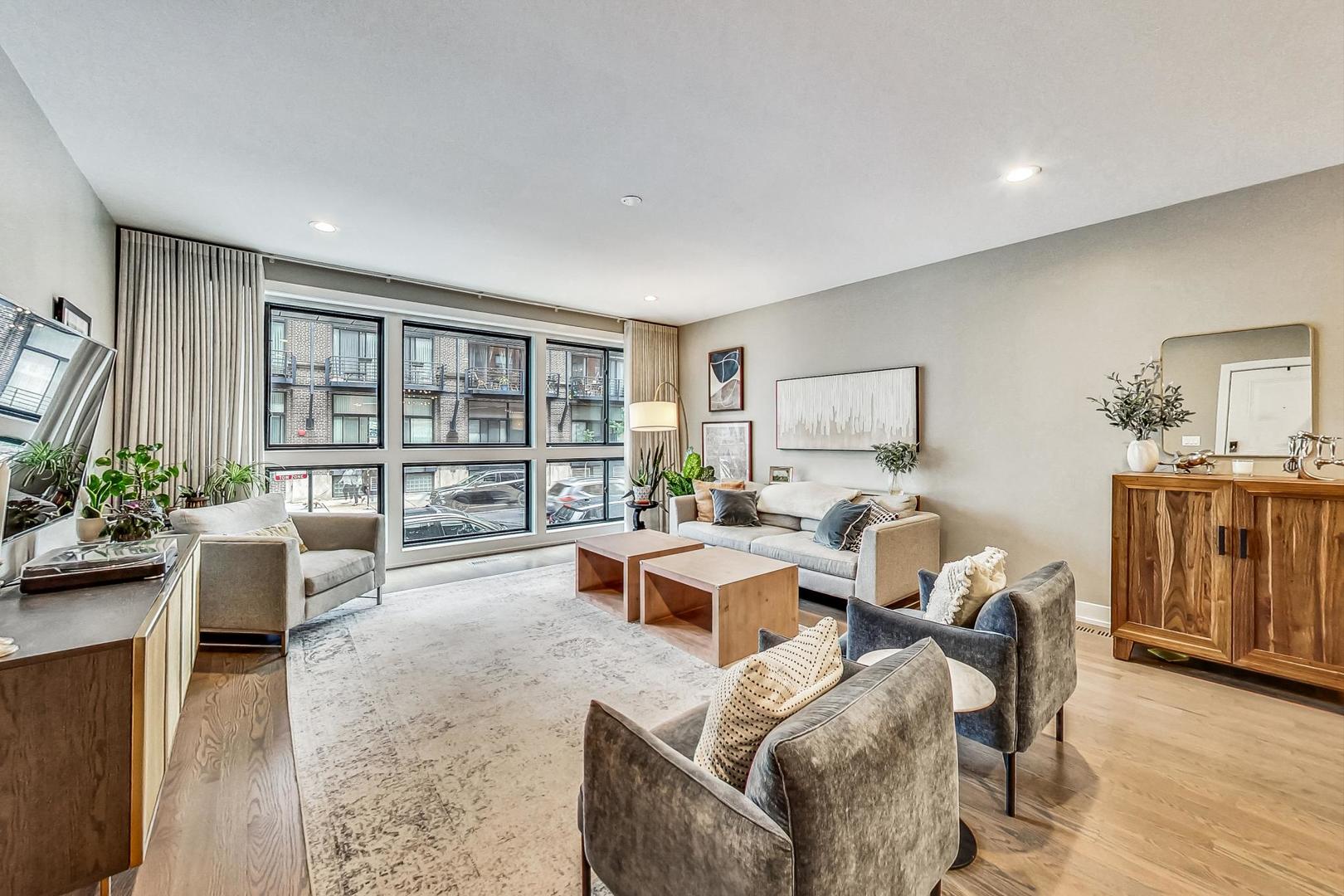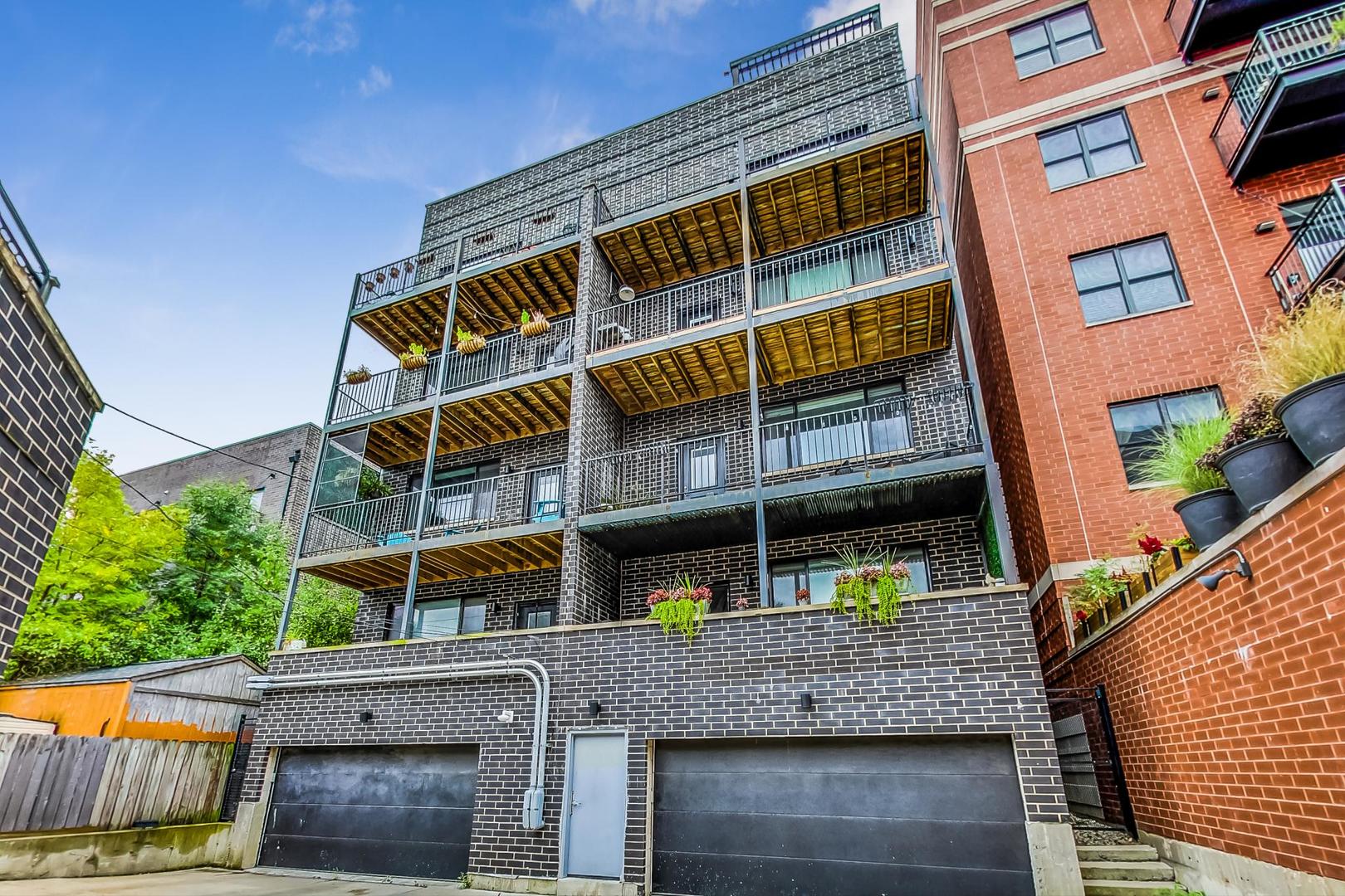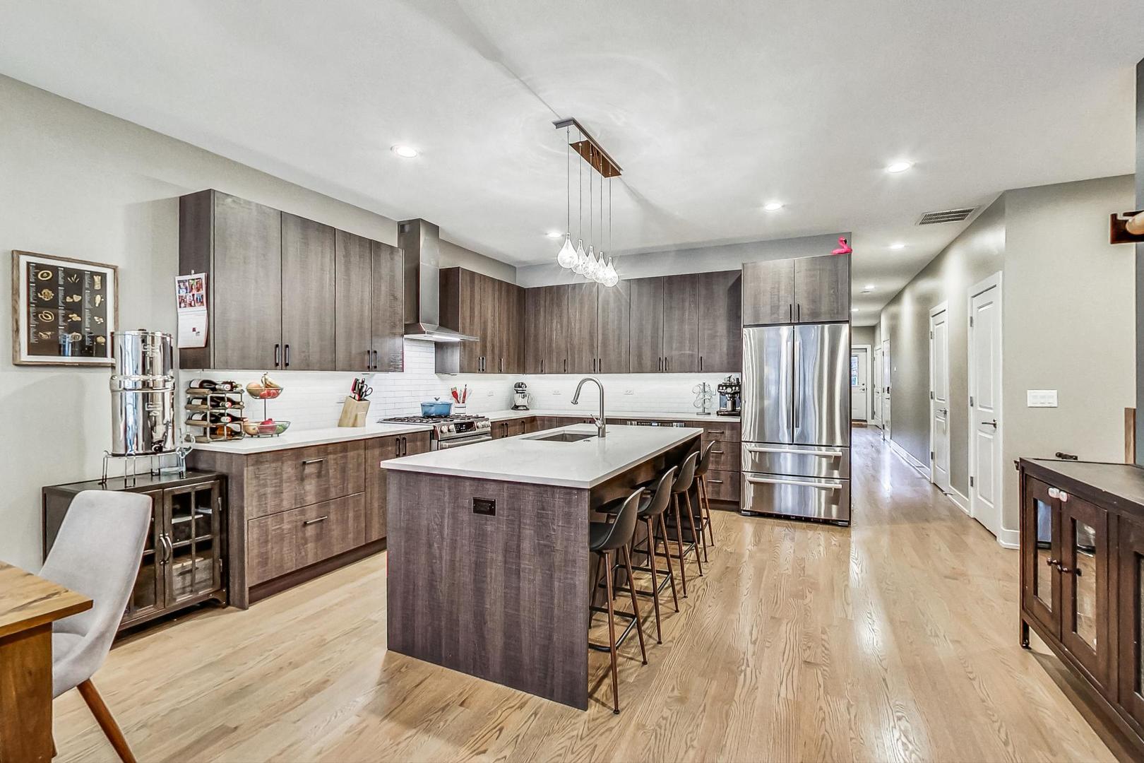 Welcome home to this spacious and bright 4 bed, 2.5 bath duplex in a prime location in Logan Square. This professionally designed extra wide layout built in 2018 features an open floorplan with natural oak hardwood floors, floor to ceiling south-facing windows (complete with custom drapery) and plenty of high end upgrades throughout. In the chef's kitchen you will find timeless textured cabinetry, modern Bosch appliances and quartz countertops. The large primary suite with en suite boasts dual walk in closets, two separate vanities, a massive walk in shower and heated floors. Downstairs, you will immediately notice the 9 ft ceiling height - making it bright and airy with lots of light streaming throughout. A 2nd living space complete with a full length wetbar is perfect for entertaining. There are three generously sized bedrooms, all with ample closet space and a full bath complete with dual vanities. Throughout the house you will find multiple storage areas - including two extra-large hall closets, pantry, laundry cabinetry and indoor storage room. An attached, heated garage parking space is included in the price. Last but not least you have three, yes THREE, outdoor living spaces: a private deck off the back of the house to grill and relax, a rooftop area with large pergola and skyline views and a massive newly built out garage roof deck space (shared with one other unit) that is the perfect place to entertain outdoors. Ideally situated by the California and Armitage intersection, you are steps from the best restaurants and night life Logan Square has to offer! Quick access to the CTA Blue Line, Kennedy Expressway and 606 make this location a commuter's dream.