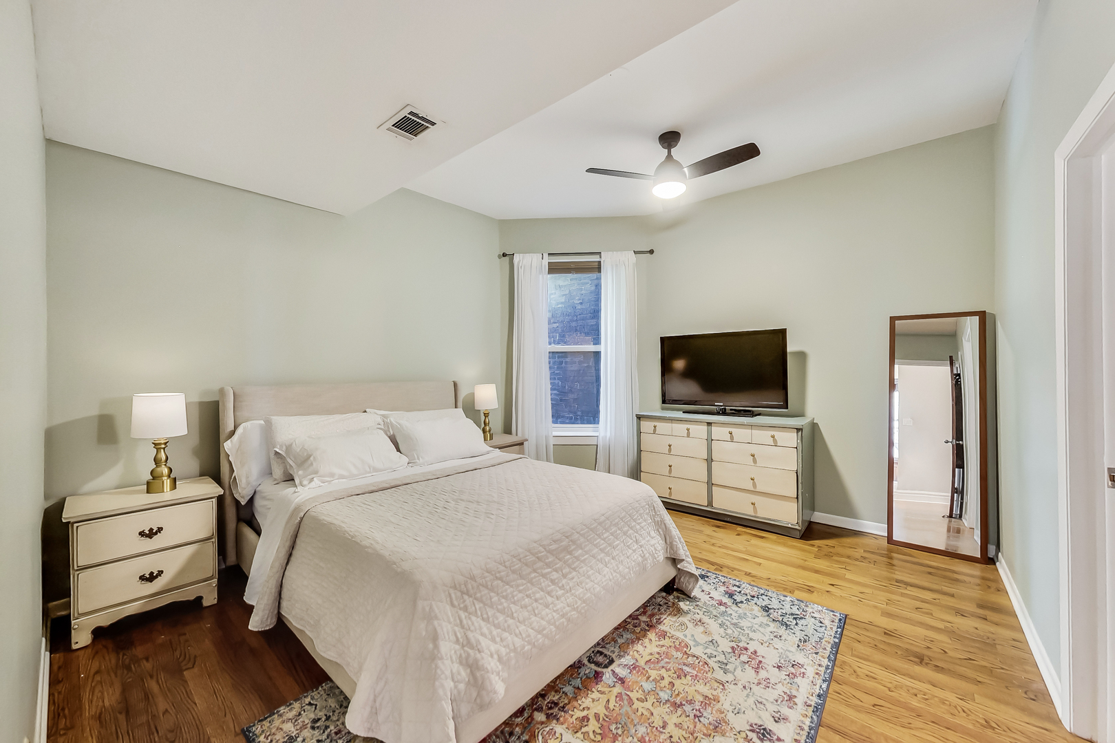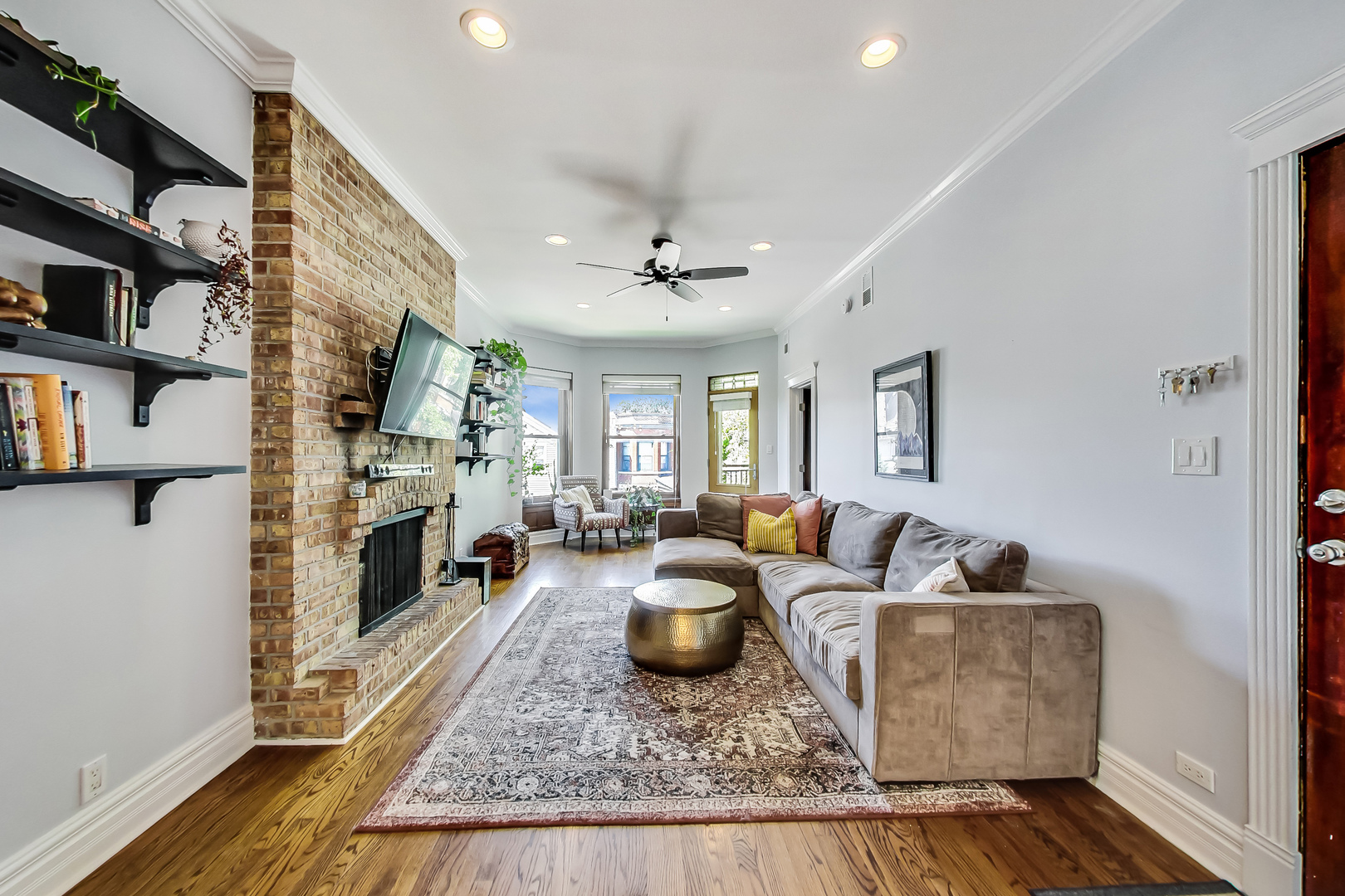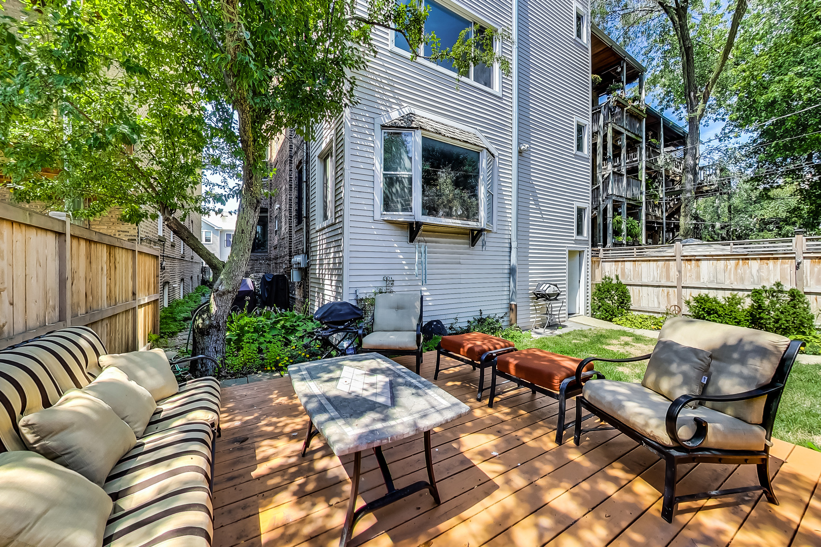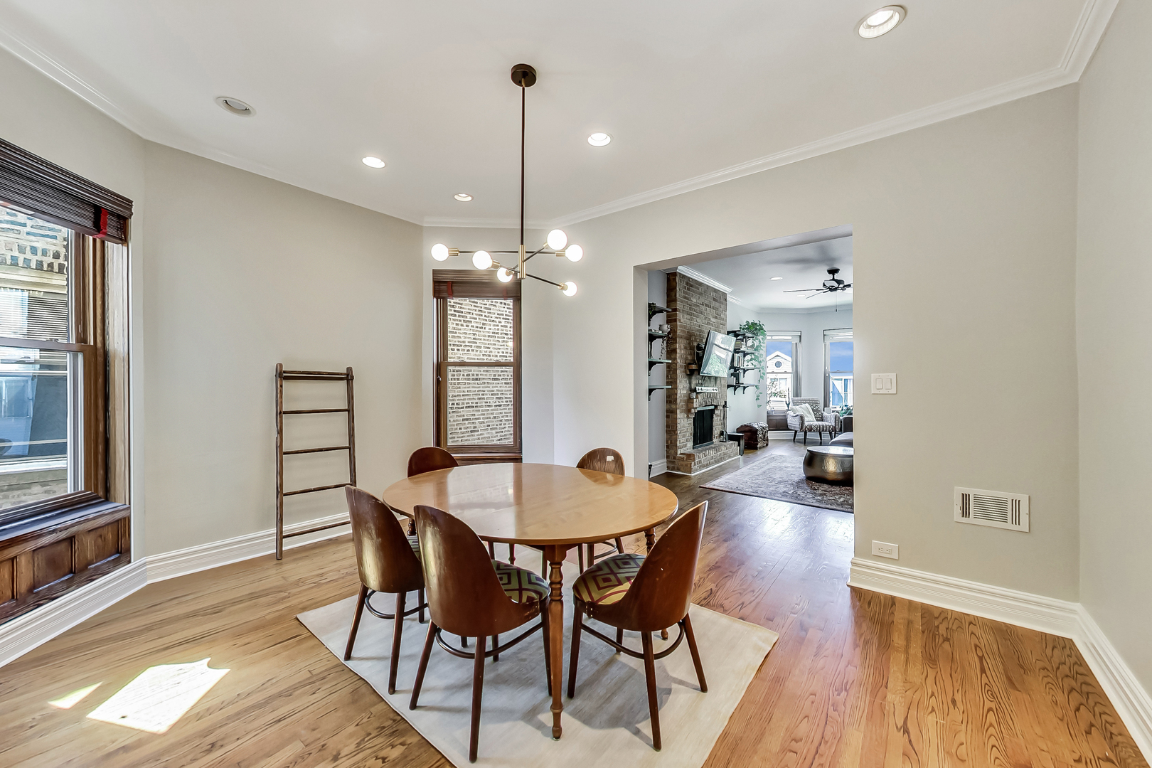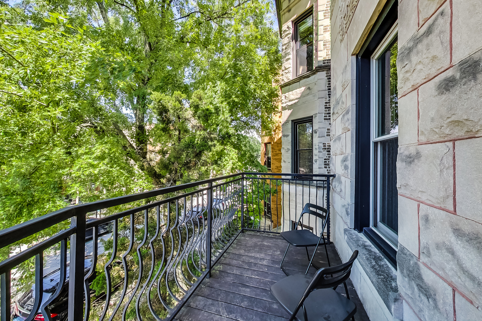 Charming 3 bed/2 bath Vintage Greystone with crown molding, hardwood floors and a cozy all brick fireplace. The large separate dining room with oversized windows is situated in between the living room and kitchen which makes hosting a breeze! The balcony located just off the living room is a great way to enjoy your morning coffee. Kitchen with granite countertops and stainless steel appliances. Bonus sunroom directly off the kitchen is ideal for a home office or exercise room. Primary suite with a bathroom renovated prior to sellers ownership with timeless penny tiles. The 2nd full bathroom combines classic white subway tile with on trend ceramic tile heated floors. Great outdoor space! The shared yard is pet friendly and has a built out deck to grill and relax. 1 garage spot included, plus tons of storage in the basement. This building is NOT on the train side of Wilton. Quiet one-way street a few blocks north of Wrigley. Everything is at your fingertips in Wrigleyville and Lakeview. Prime location!