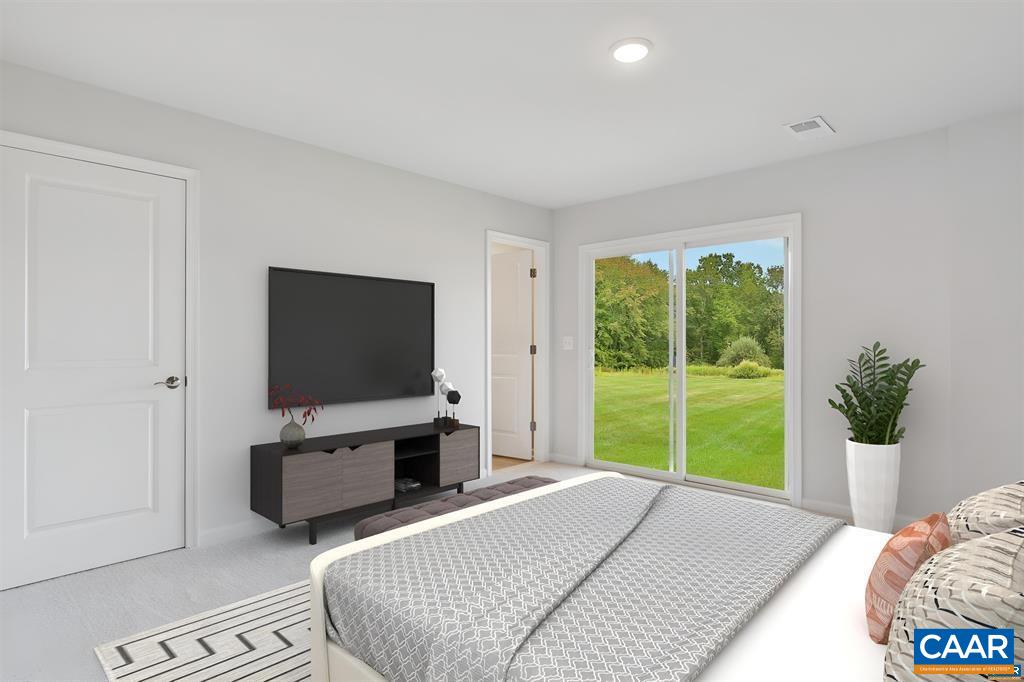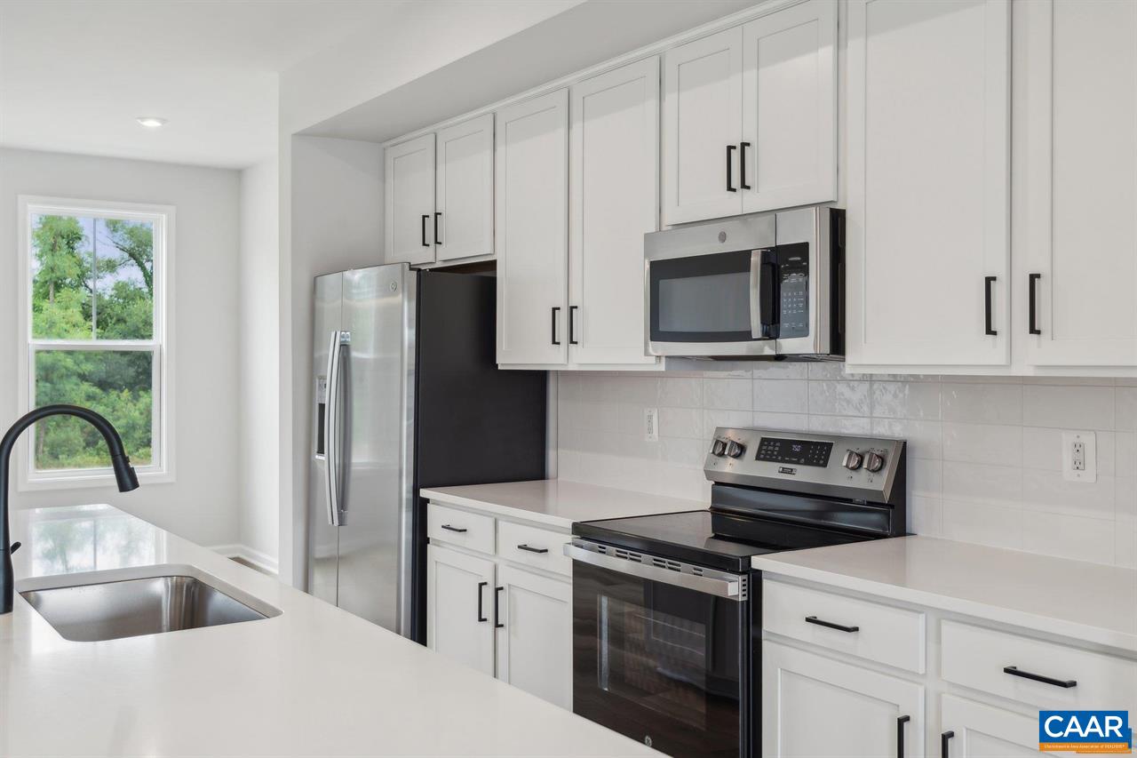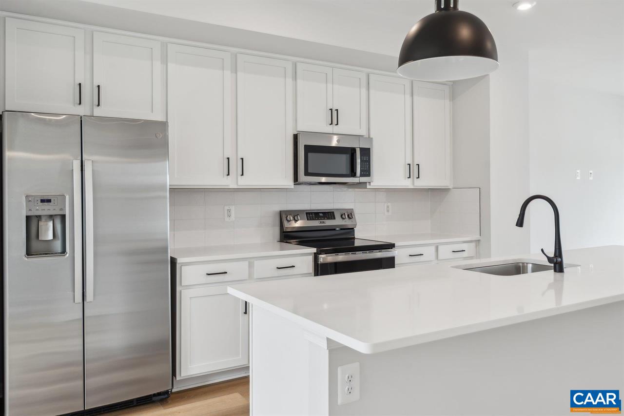 Available in early August 2025. Be the FIRST to live in this beautifully designed brand new construction true 4 (FOUR!) bedroom, 3.5 bathroom home. An abundance of natural light floods every floor thanks to east and west facing windows, and light color LVP flooring. Open concept main level features separate living and dining rooms, well-appointed and bright kitchen with white cabinets, white quartz & GE stainless steel appliances, two closets, and 10 foot long breakfast bar, plus a 10x17 balcony space allowing for plenty of space for your grill, outdoor table set, and plants. Primary bedroom suite w/ unbeatable mountain views and en suite bathroom with double sink vanity and walk-in closet. The bedroom level is rounded out by large side-by-side laundry closet with storage, desk nook, full bath w/ double sink, and two more bedrooms. Additional ground level true bedroom en suite includes a full bathroom and direct access to the grassy backyard. Great storage throughout plus a one car attached garage. Phenomenal Crozet location WALKABLE to downtown amenities and restaurants. Western Alb schools. 20 minutes to Cville! **Pics are of a model unit w/ some upgrades that we do not have (shiplap, curtains)!