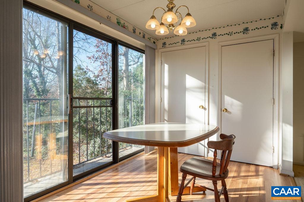 Quiet yet convenient! Off the beaten path but steps away from ACAC Adventure Central and a short drive from the shopping areas along route 29 north, Hydraulic Rd., and Rio Rd. UVA and downtown are minutes away. Go up a short flight of stairs and you're home! Two bedrooms, Jack and Jill bathrooms, breakfast nook with sliding glass doors that open onto Juliet-ish balcony. Central air conditioning system not working, but central heat works fine. HOA covers exterior maintenance, grounds maintenance, cable, trash, water, sewer, master insurance policy, and snow removal. One assigned parking space plus guest spaces.