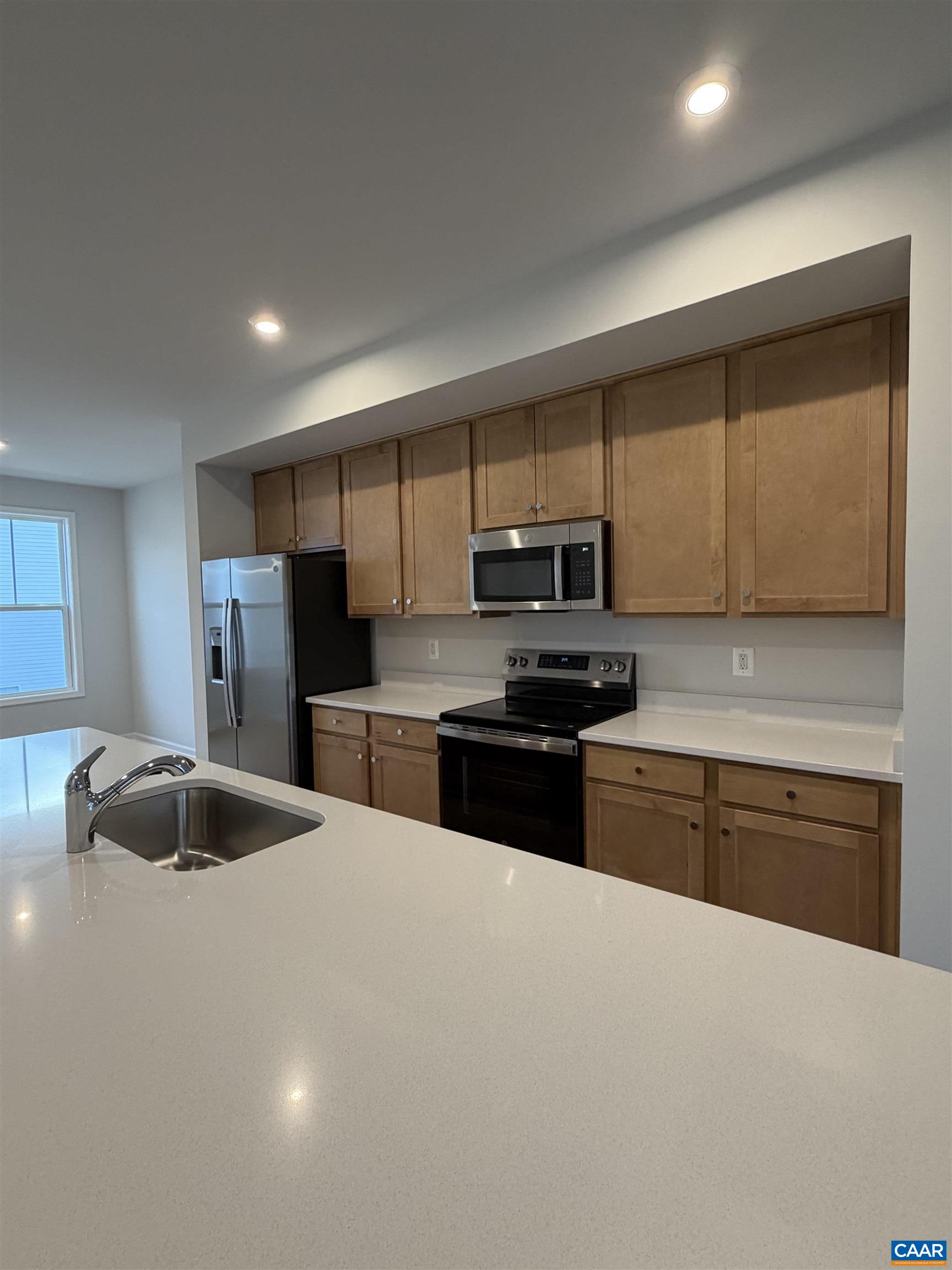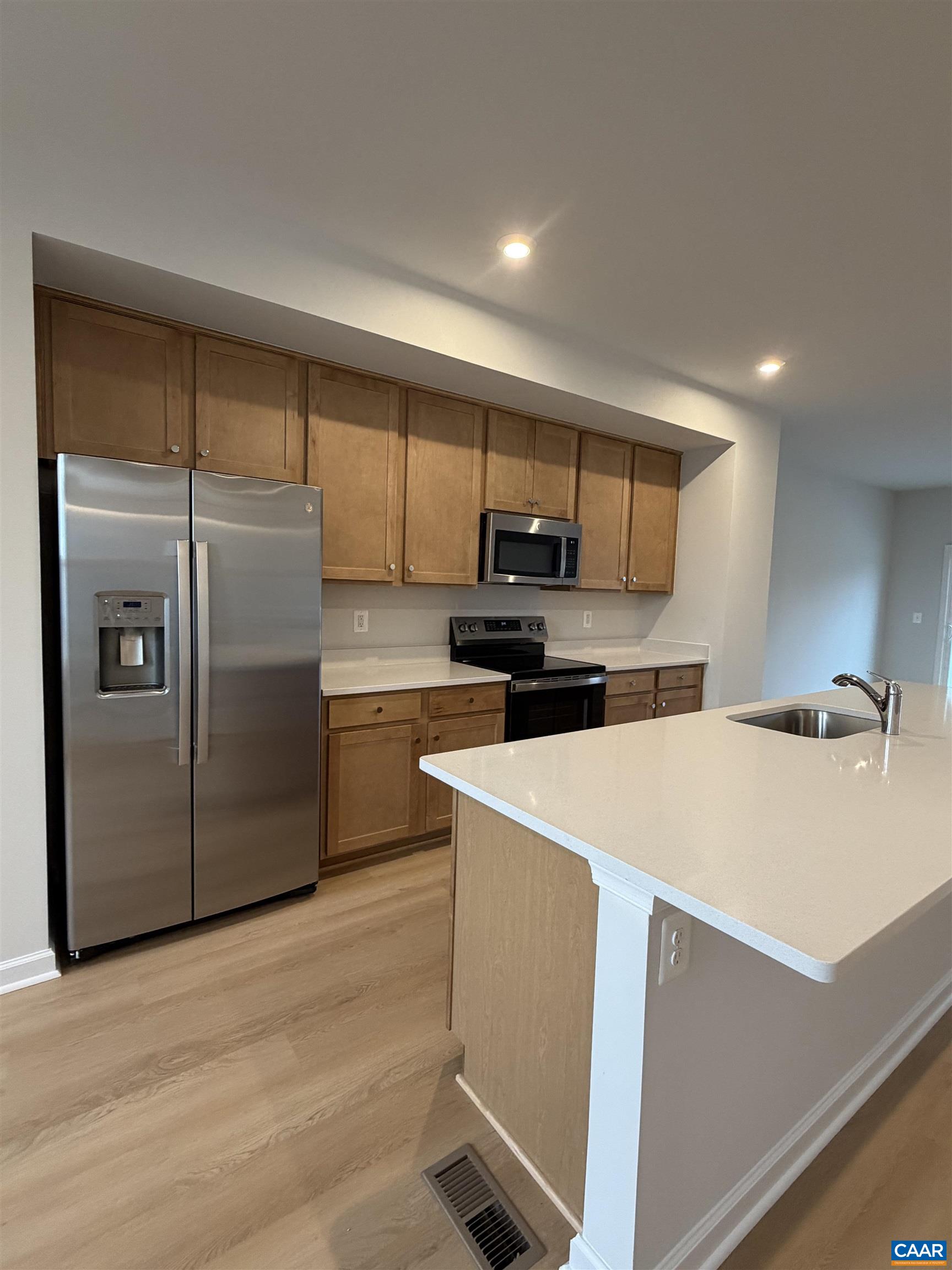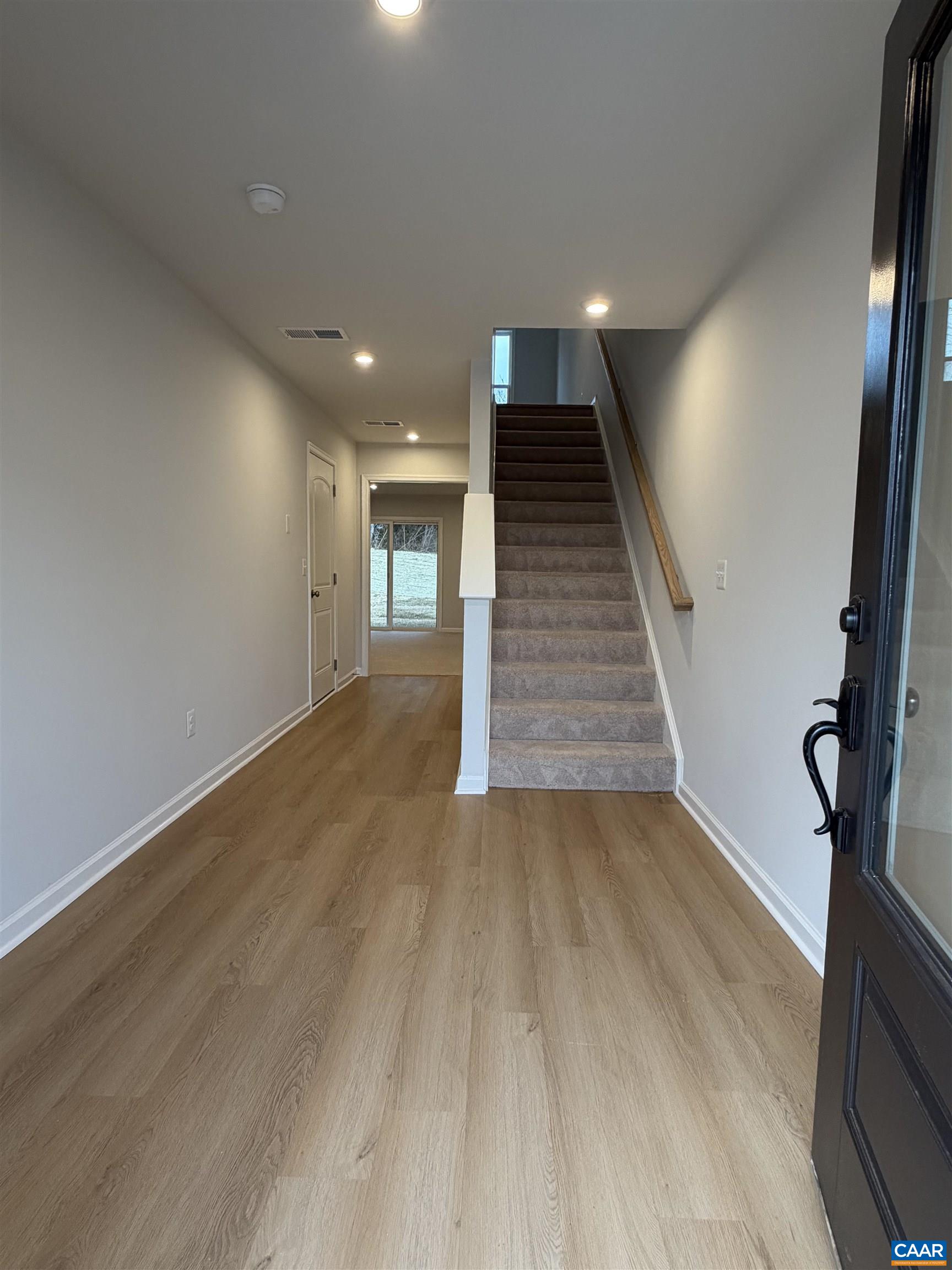 Be the first to live in this gorgeous 3 bedroom plus large bonus room, 2 full bathroom plus 2 half baths home. An abundance of natural light floods every floor thanks to the front windows having unobstructed street views, light color LVP flooring, and bright color scheme throughout. Open concept main level features separate living and dining rooms, well-appointed kitchen with quartz & GE stainless steel appliances, two closets/pantries, and 10 foot long breakfast bar, plus a 10x17 balcony space allowing for plenty of space for your grill, outdoor table set, and plants. Primary bedroom and en suite bathroom with double sink vanity and walk-in closet. The bedroom level is rounded out by large side-by-side laundry closet with storage, desk nook, full bath w/ double sink, and two more bedrooms. Additional ground level large flex room with half bath and direct access to the grassy backyard. Great storage throughout plus a one car attached garage. Phenomenal Crozet location WALKABLE to downtown amenities and restaurants. Western Alb schools. 20 minutes to Cville!