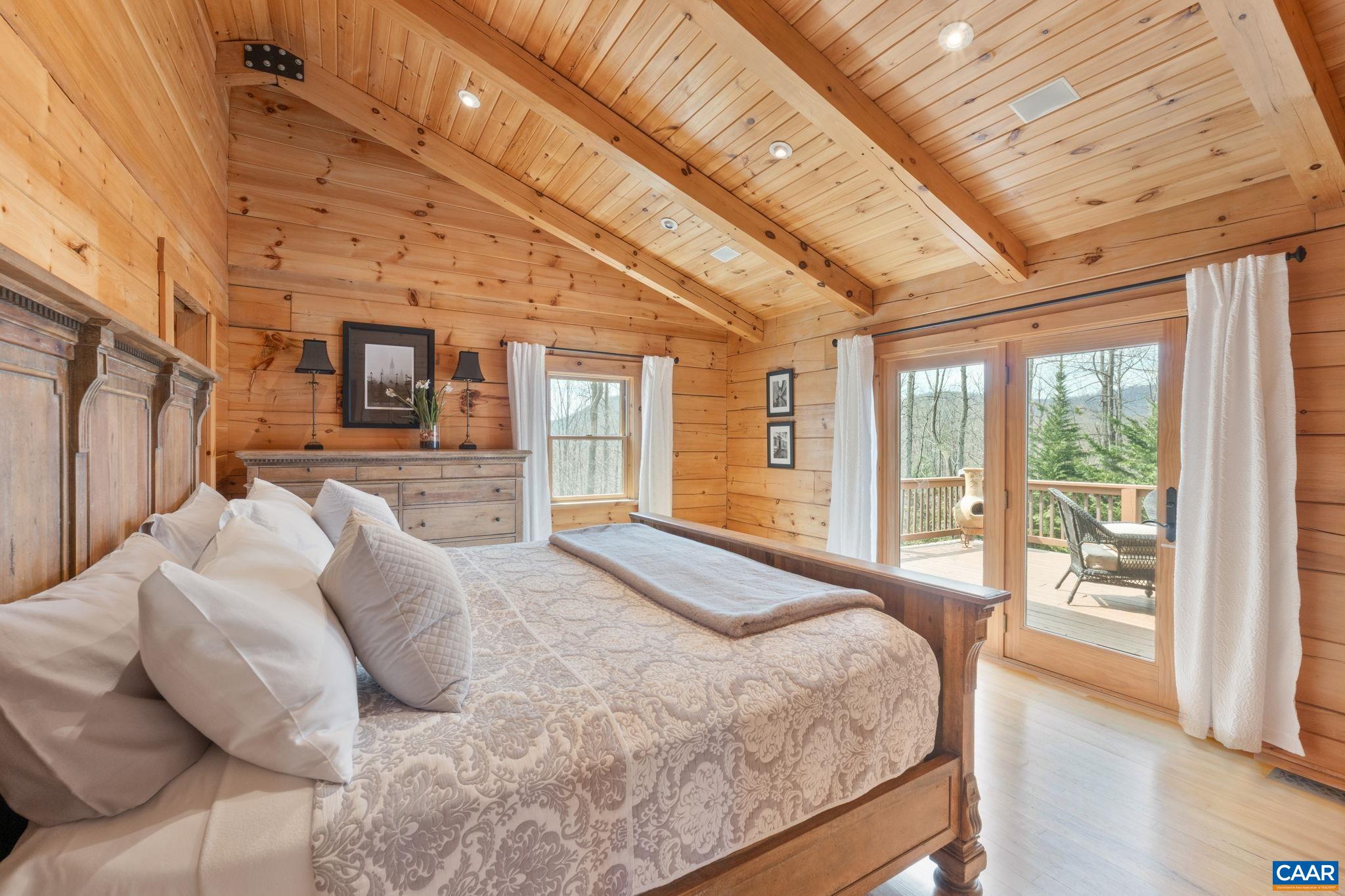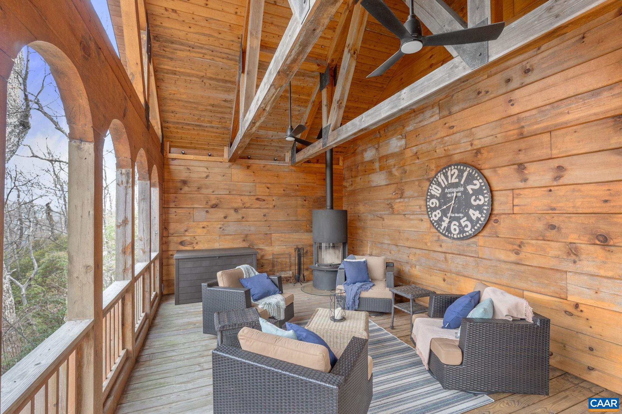 Discover rustic charm and modern convenience in this Log Home Living magazine featured, custom-built mountain retreat! Easy to maintain land feels significantly larger and is very private thanks to neighboring unbuildable land and space from neighbors. Nestled in the Blue Ridge foothills with Shenandoah views, Lost Valley is a serene escape just 90 min from DC & 40 min from Charlottesville. Inside, luxury features abound: 19' ceilings, skylights, Murano blown glass lighting and rich wood interiors create a warm, light-filled ambiance. The open-concept living space boasts mountain views & two-sided fireplace. Owner's suite features spa-like bath, heated floors, and walk-in shower. A spacious deck extends the width of the home. Downstairs is a second living area, sauna, full bath, flex room, and an oversized 2-car garage with ample storage. Outside, a charming gazebo, a second small open cabin w/ Scandinavian-built Scan wood-burning stove provides heat and ambiance. Exceptional construction with pine logs on Superior Wall Foundation. Firefly Fiber internet, propane generator, on-demand hot water, whole-home filtration, & high-tech septic system, this impeccable retreat is move-in ready, perfect for a getaway or full-time living.